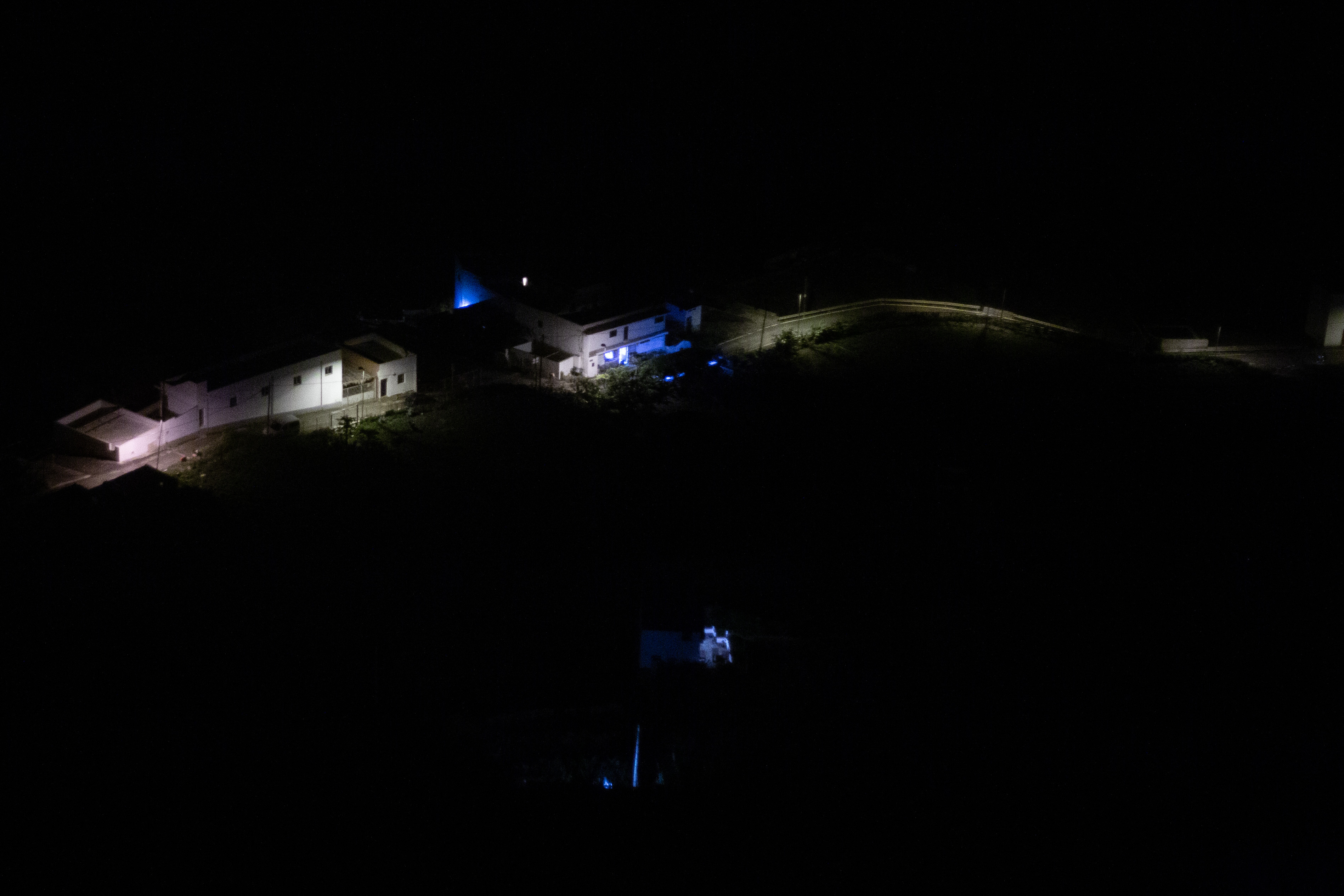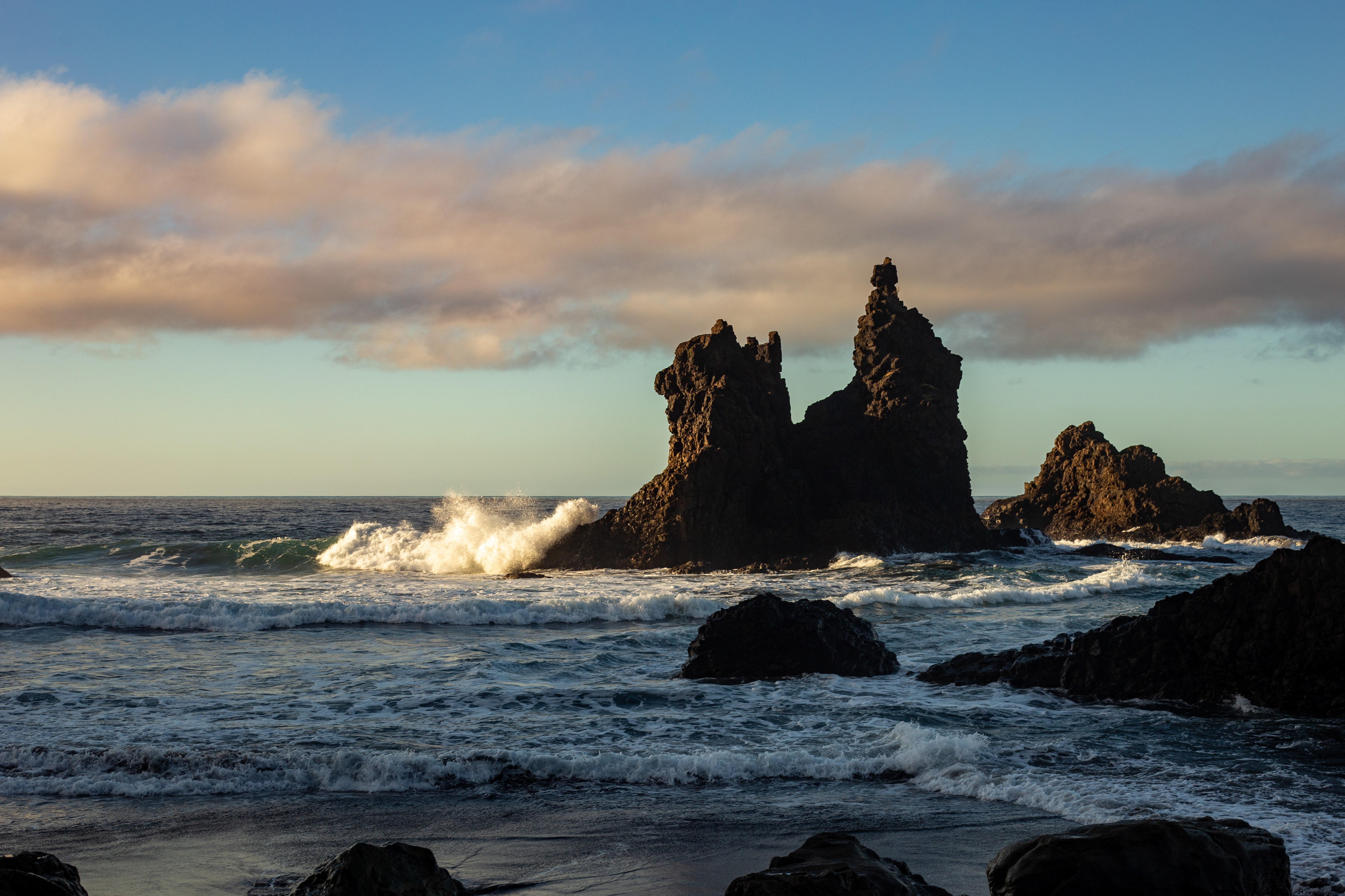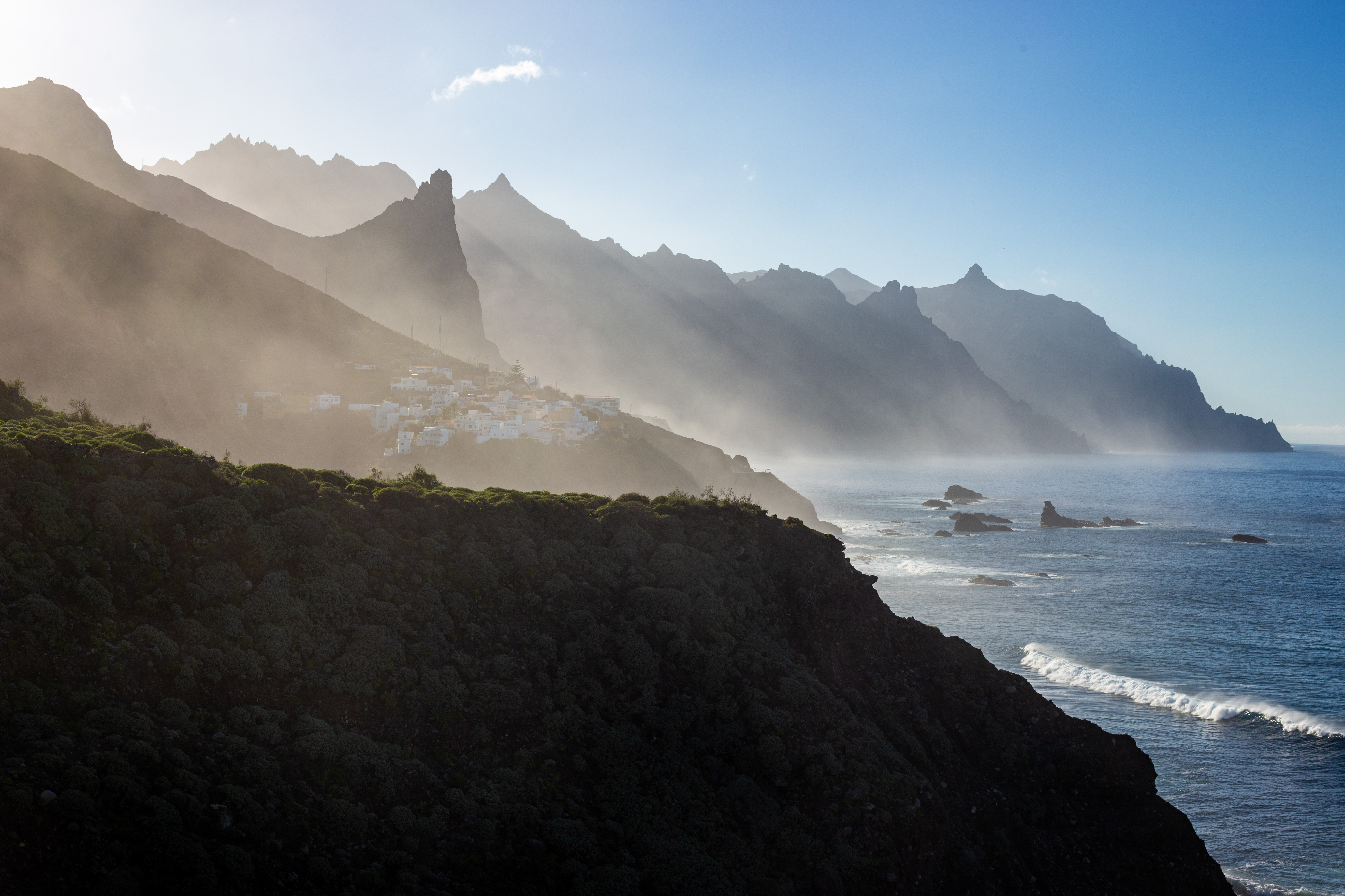 A breathtaking sunset over a mountain range is captured in the image. The sky is a gradient of orange and pink, with the sun setting behind the mountains. The mountains, with their dark silhouettes, are illuminated by the setting sun, creating a dramatic effect. The perspective of the image is from a distance, looking up at the mountains, emphasizing their grandeur. The image does not contain any discernible text or countable objects. The relative positions of the objects suggest a vast, open landscape with the mountains as the main focus. The image does not provide any information about the exact location of the landmark.