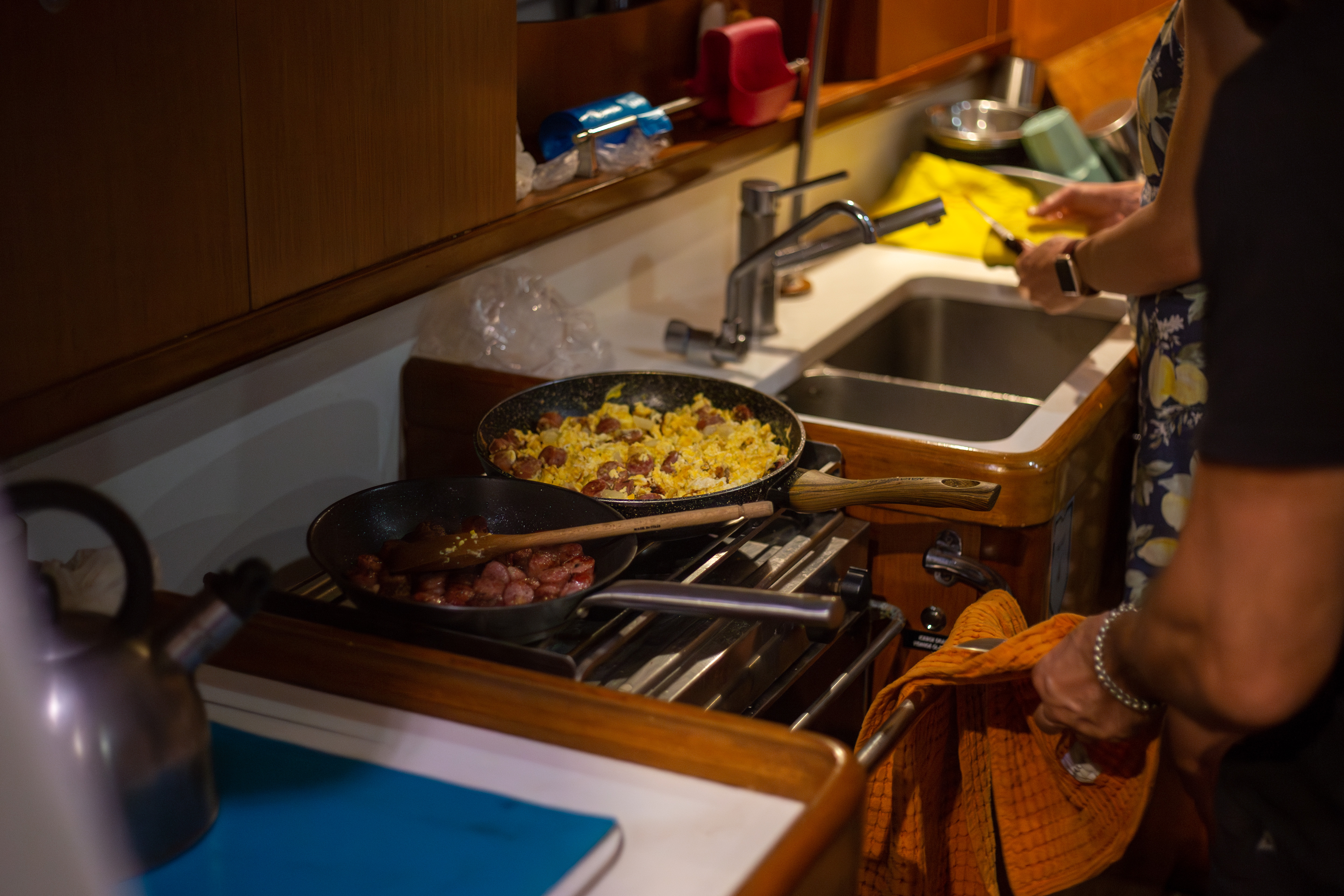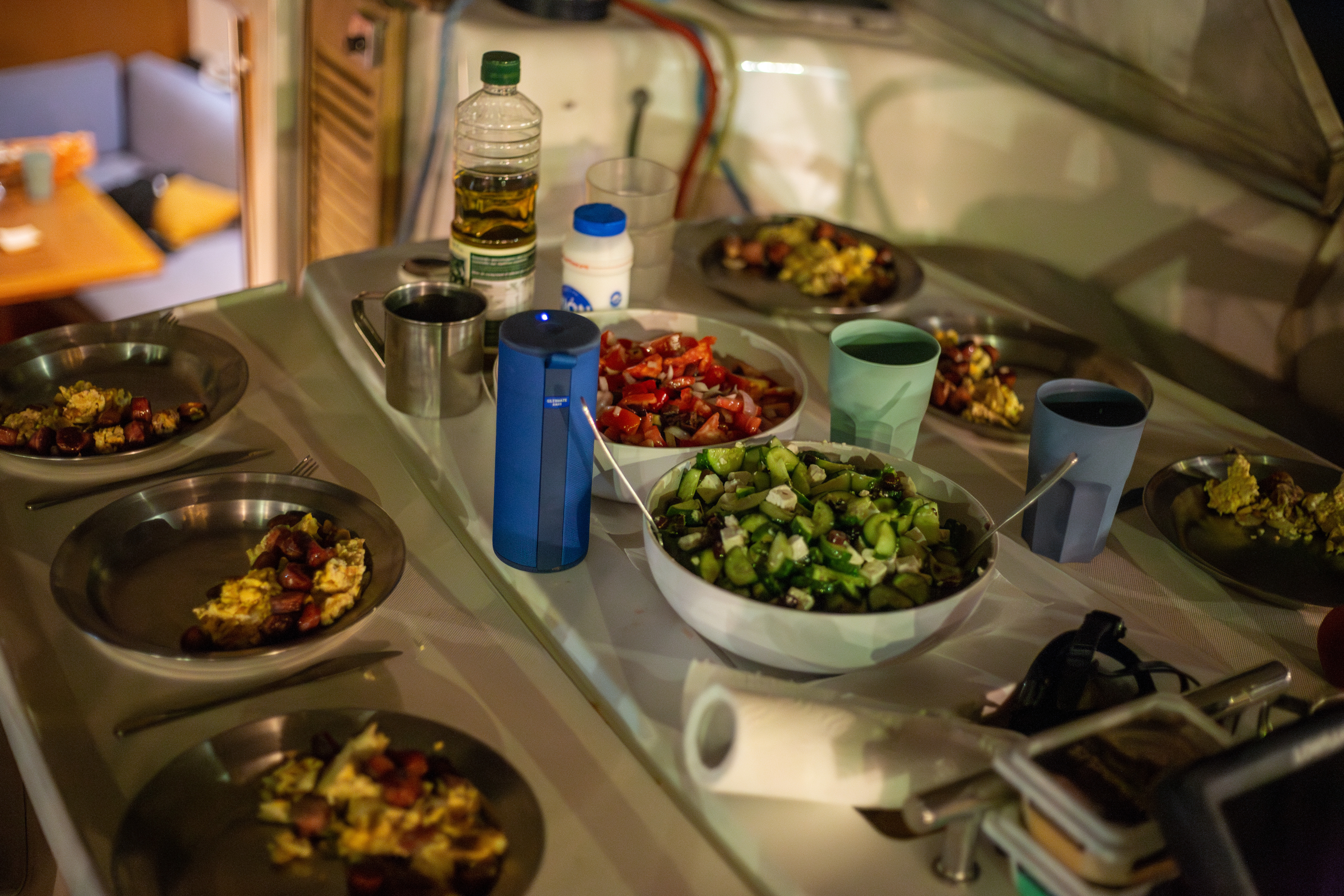 We went to the marina to get the boat and then met Evgeny, another crew member. We were waiting for the rest to arrive around midnight, so we went shopping in the meantime.