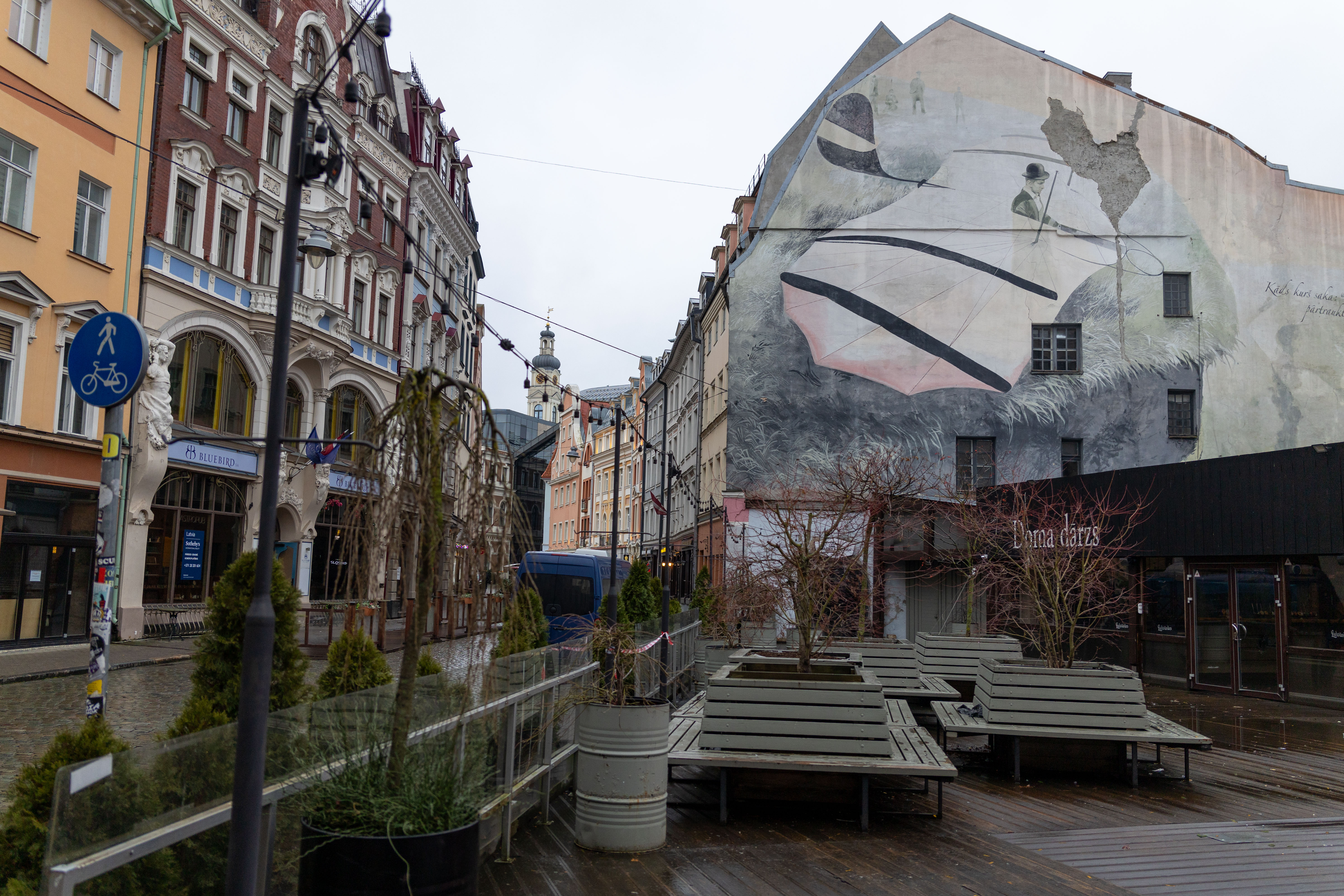 Originally I planned to walk to a striped lighthouse in Daugavgriva, turned out the distance is around 20km without public transport. I had to settle for a photo of that lighthouse on the horizon and leave a visit for later.