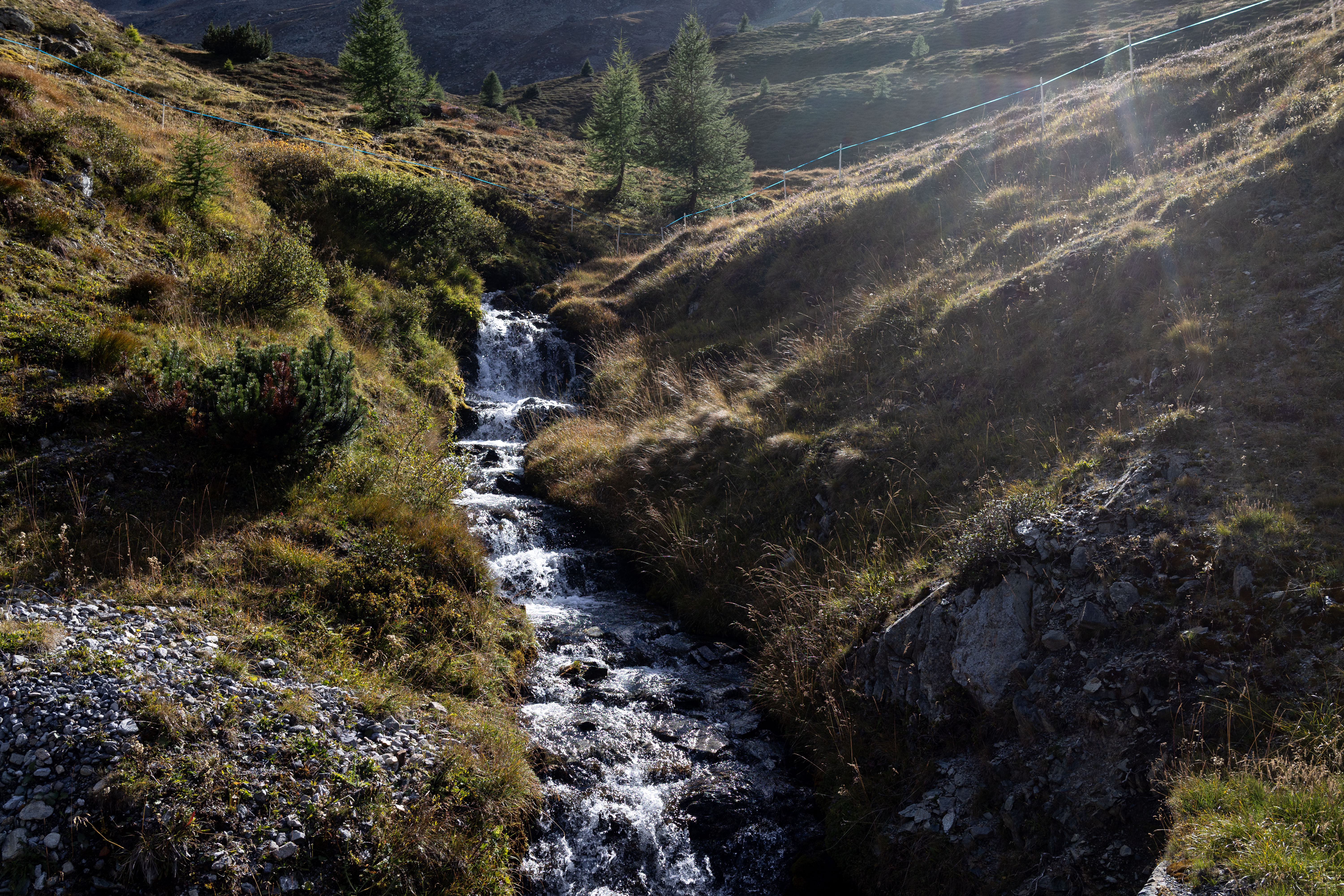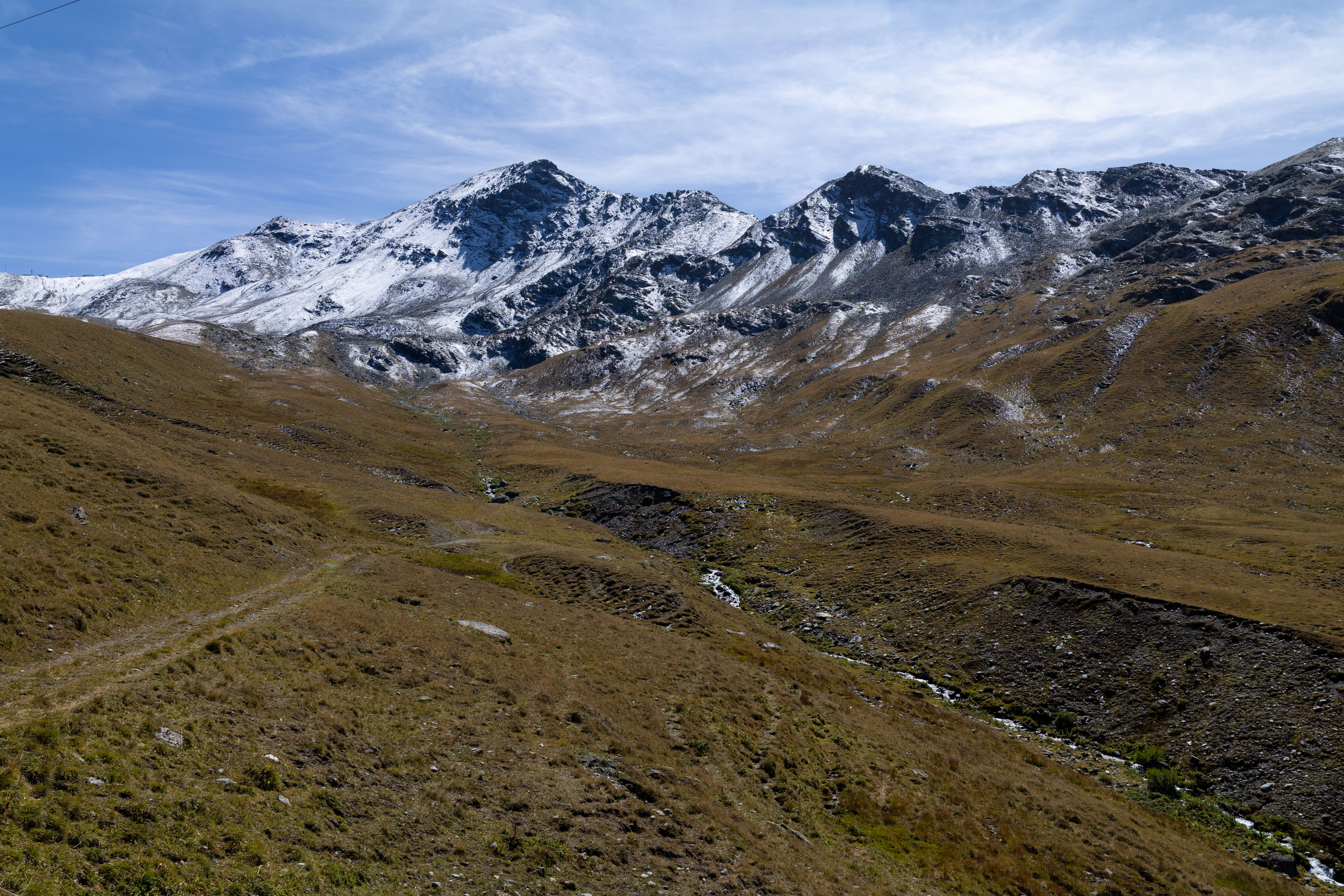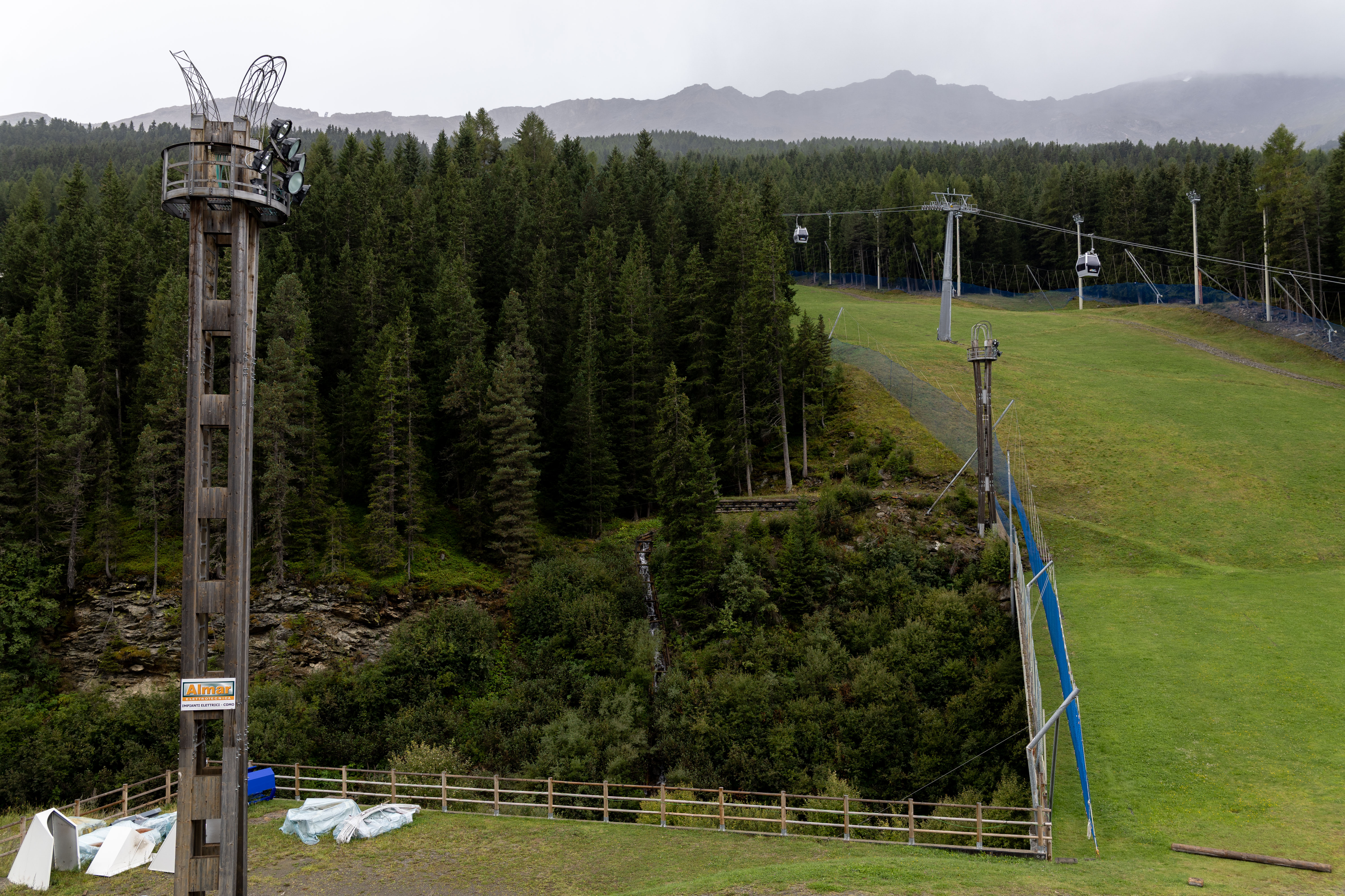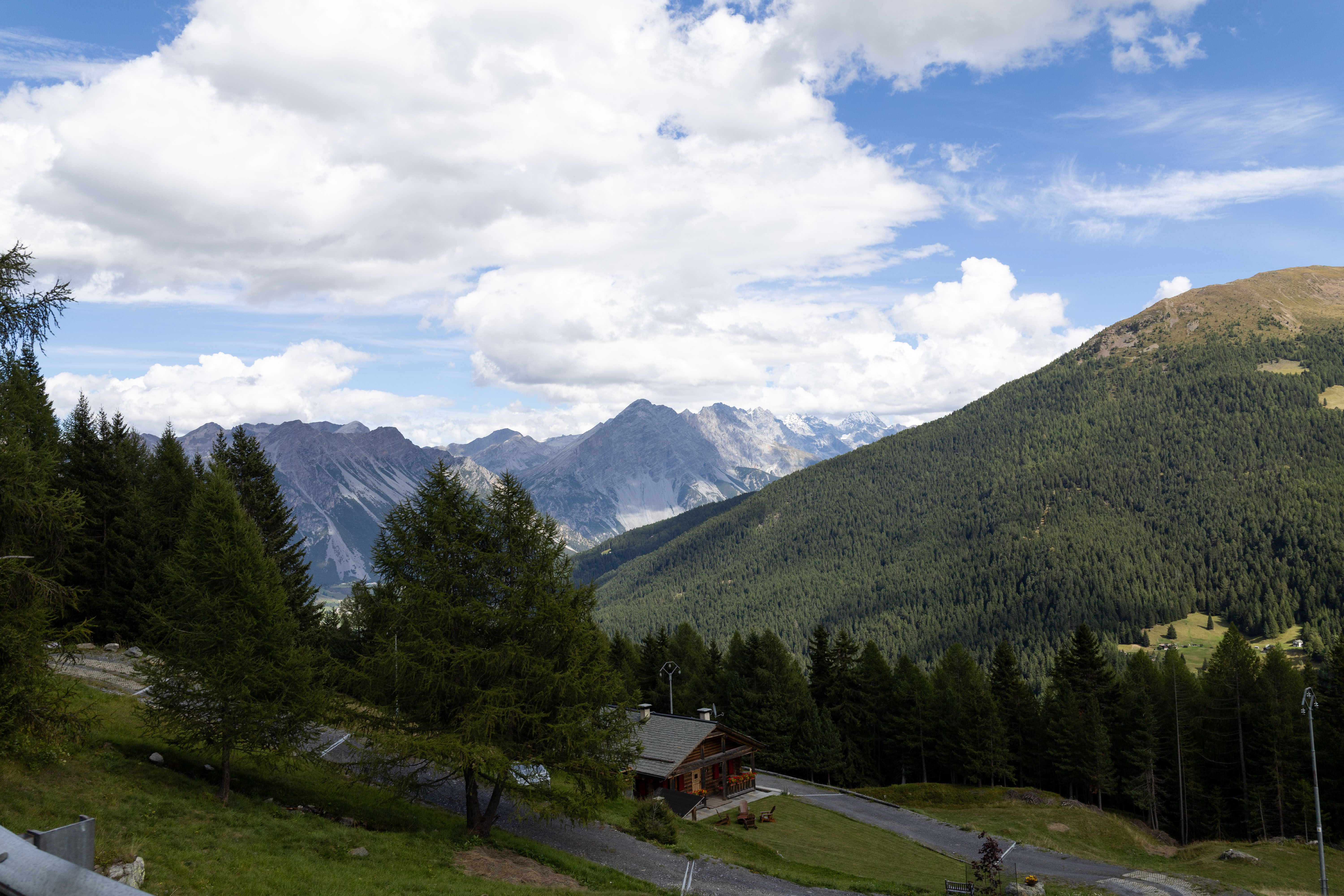 It was warm, and we reached the pass easily and enjoyably. Daniil turned back and headed home. Jozef and I descended to a chalet below. The downhill ride was pleasant with the breeze, but the thought of climbing back up loomed large. While Jozef enjoyed a non-alcoholic beer at the bottom, I wandered along a trail on the slope with my camera.