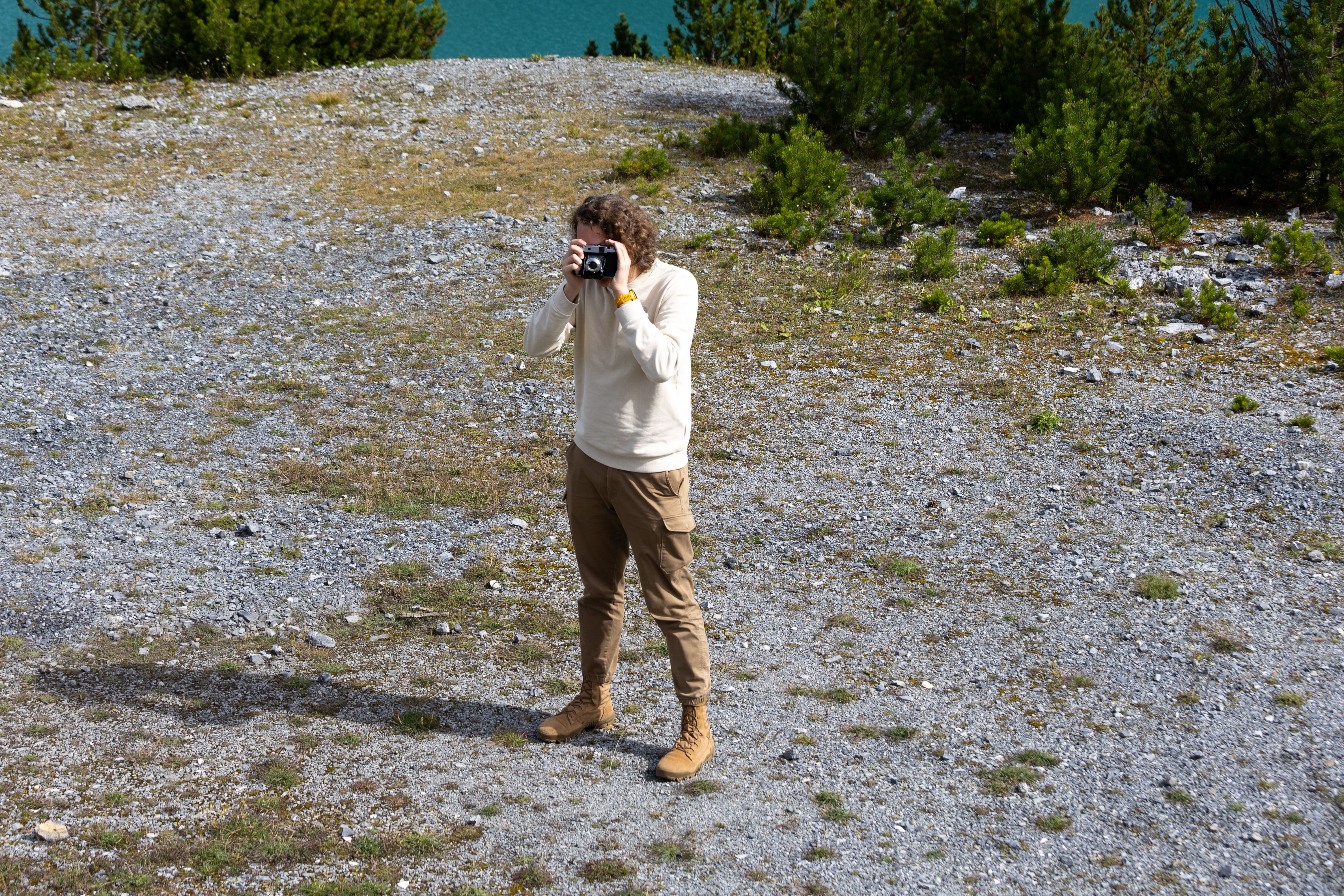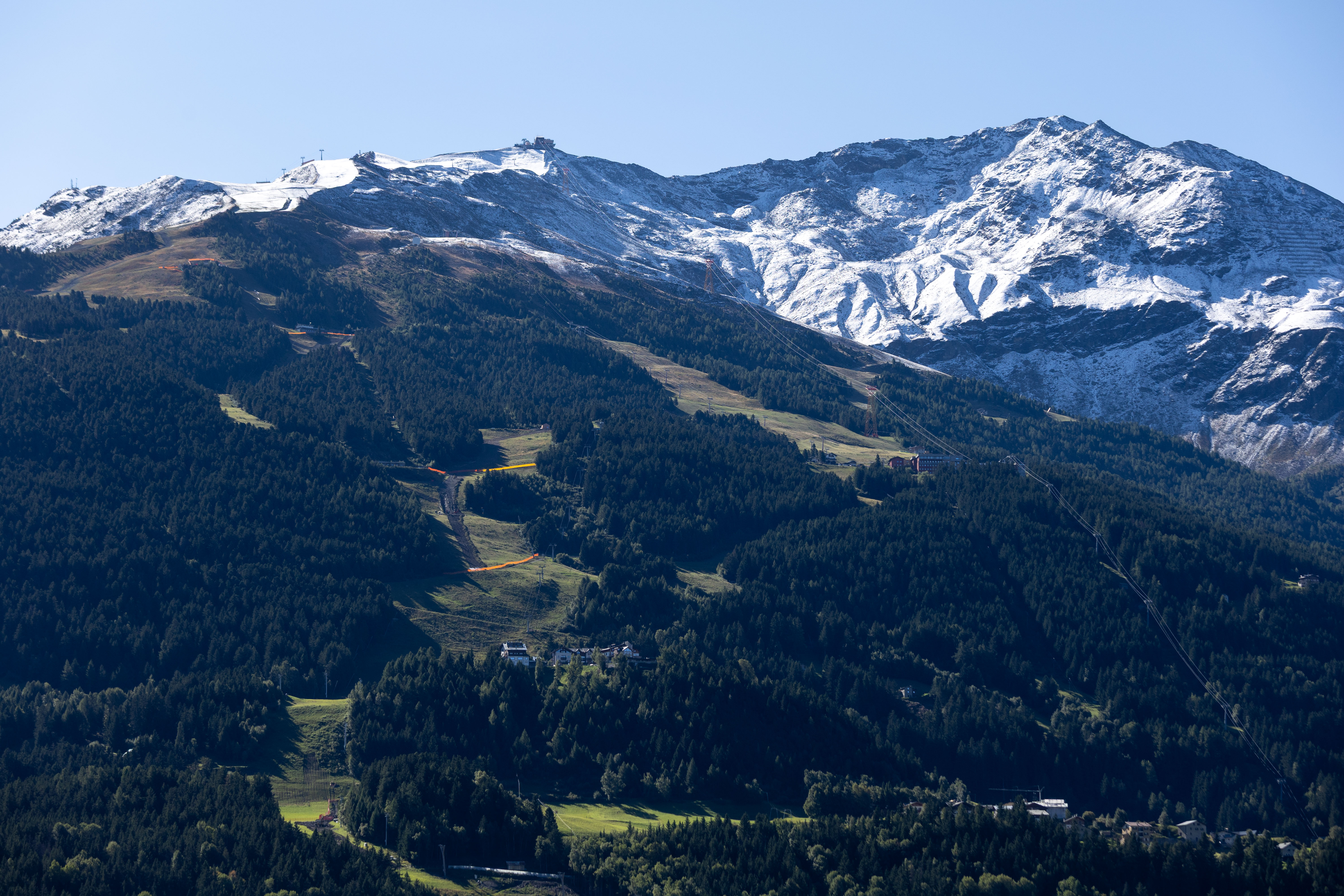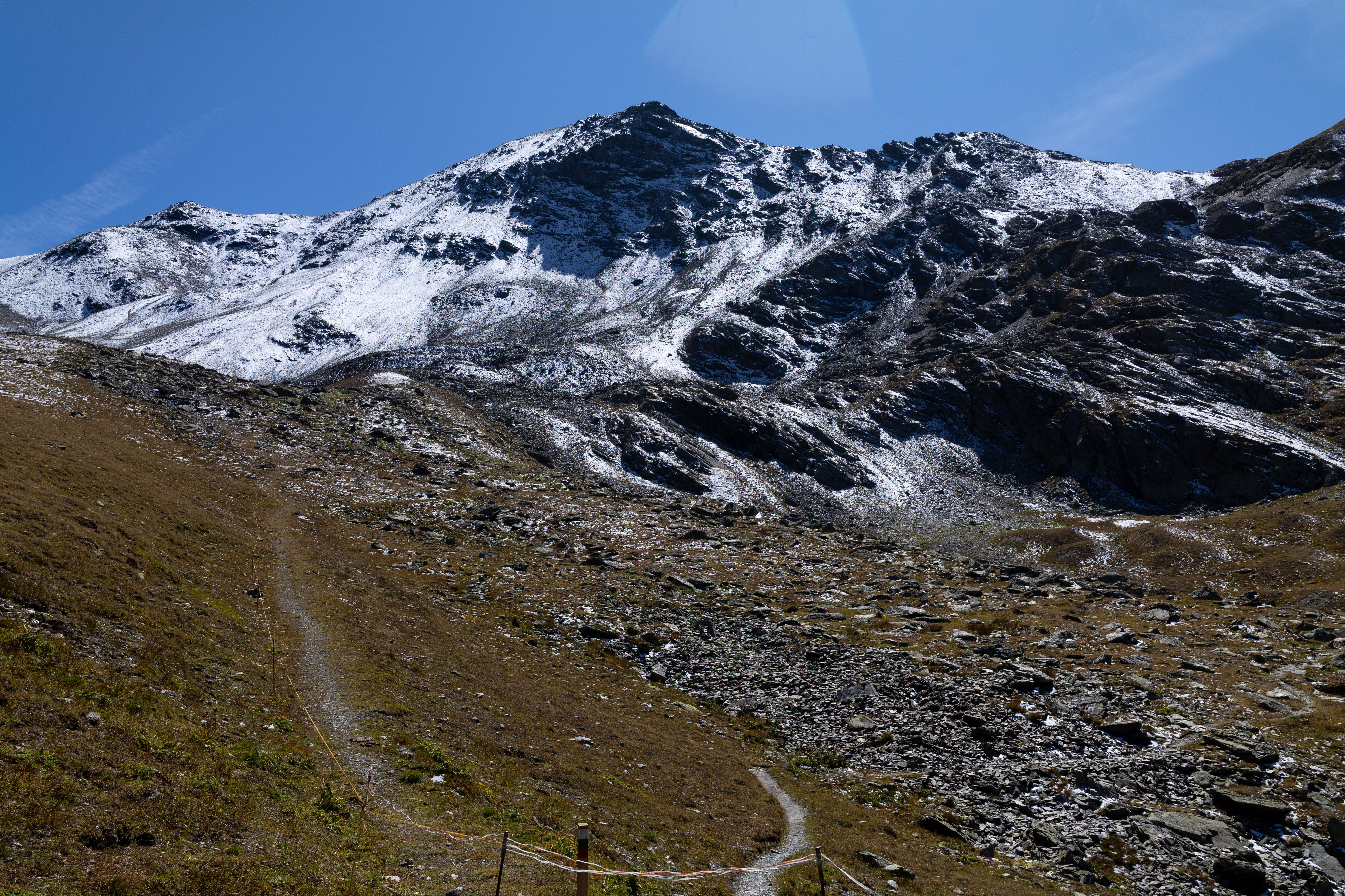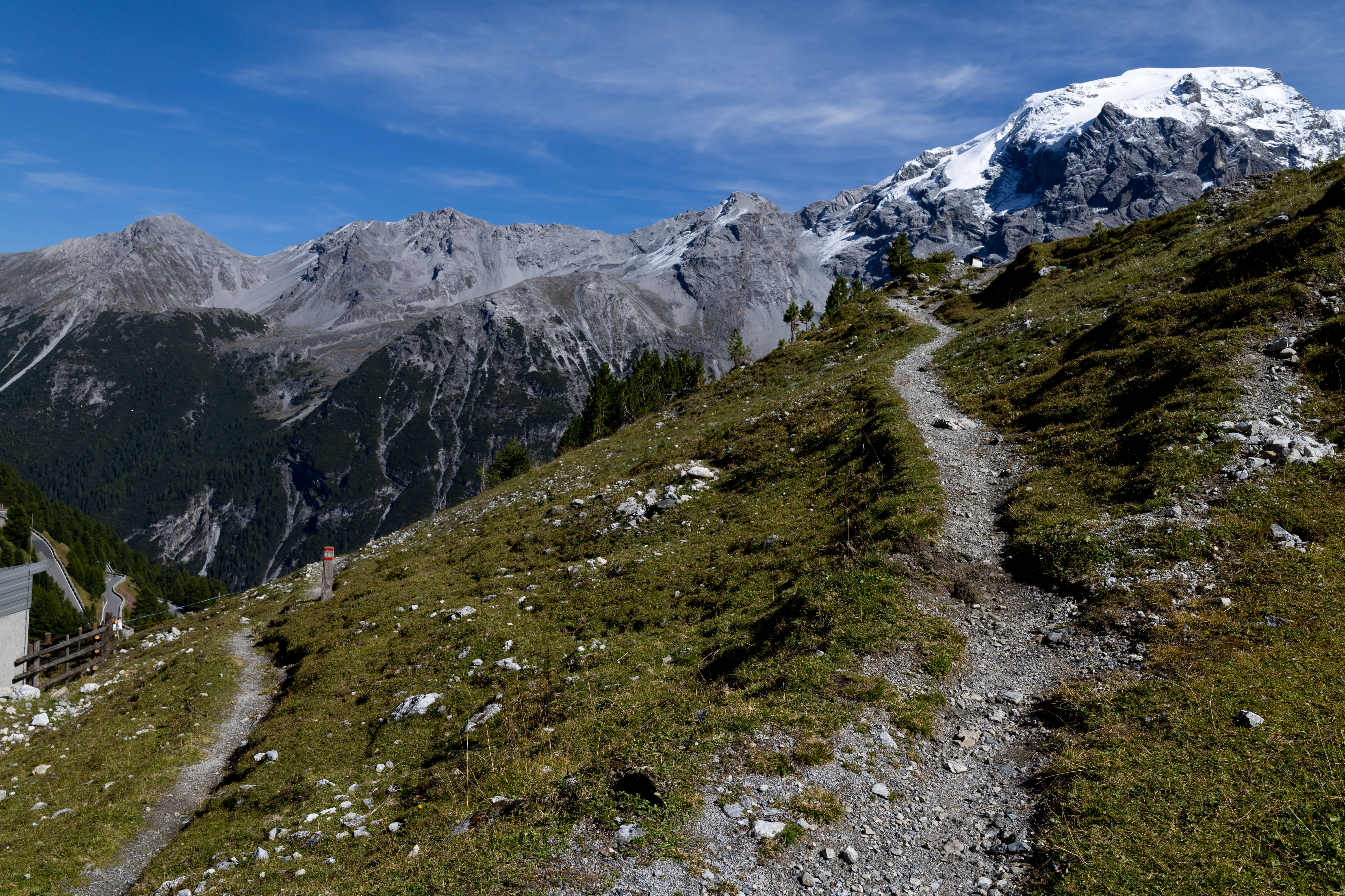 It was warm, and we reached the pass easily and enjoyably. Daniil turned back and headed home. Jozef and I descended to a chalet below. The downhill ride was pleasant with the breeze, but the thought of climbing back up loomed large. While Jozef enjoyed a non-alcoholic beer at the bottom, I wandered along a trail on the slope with my camera.