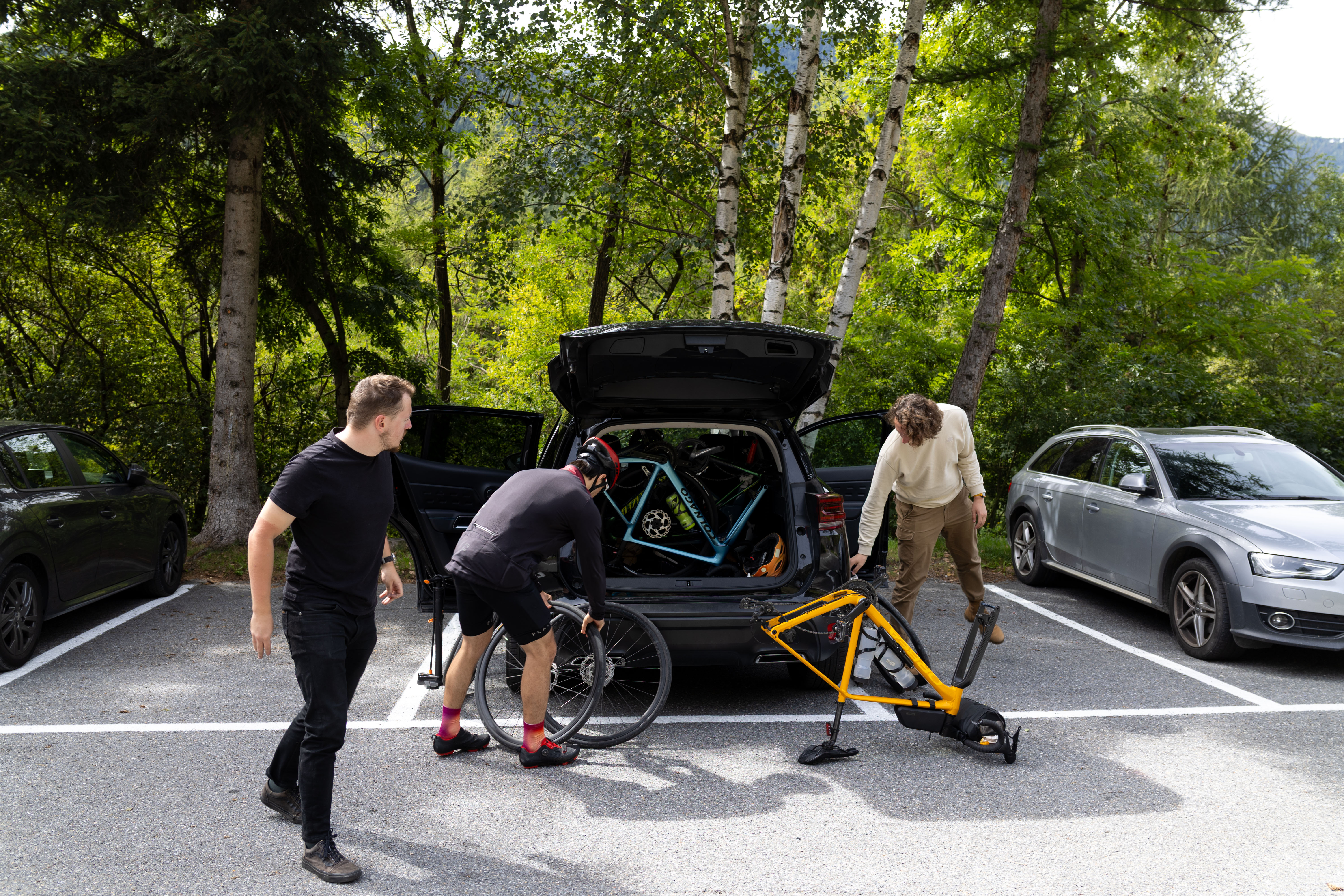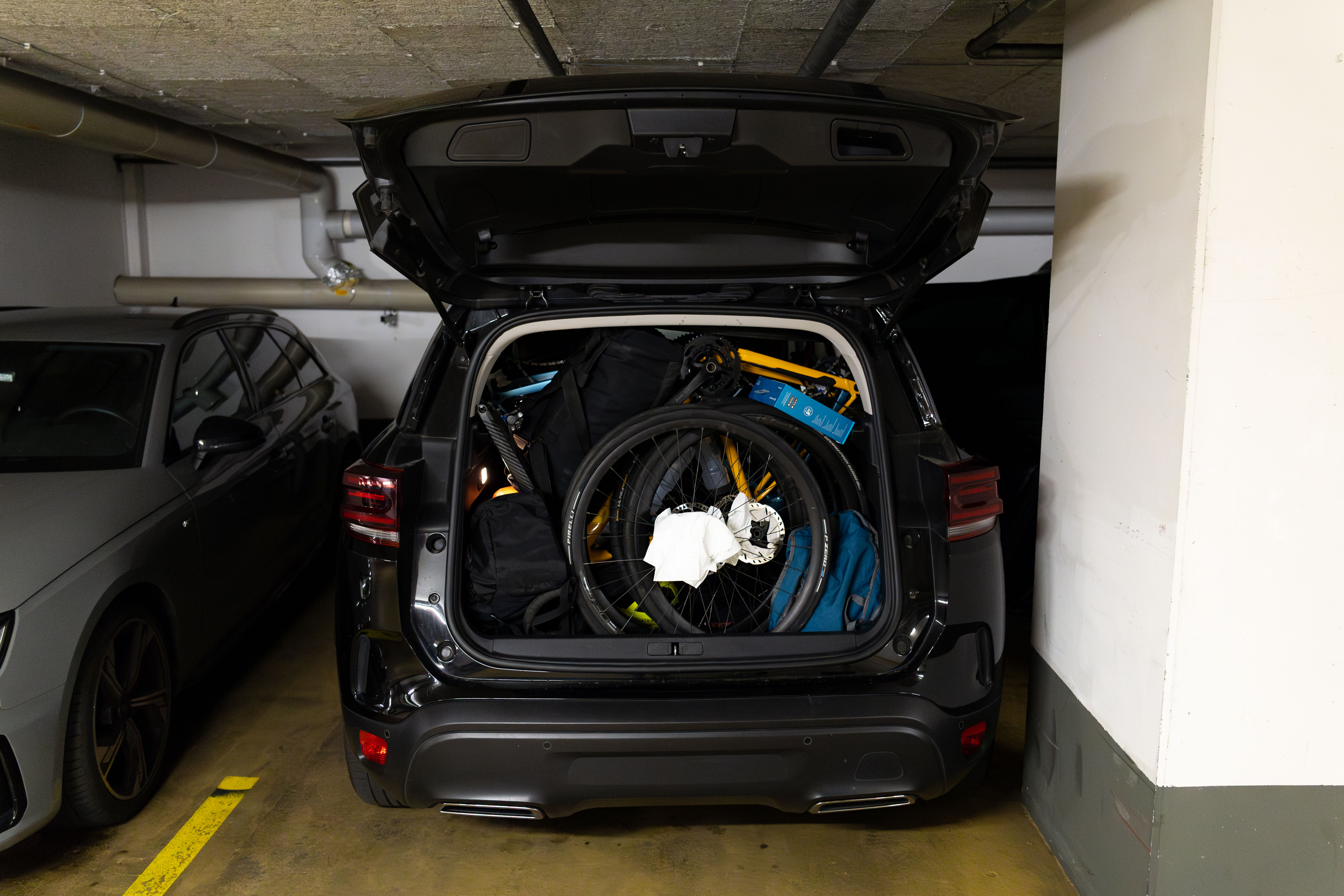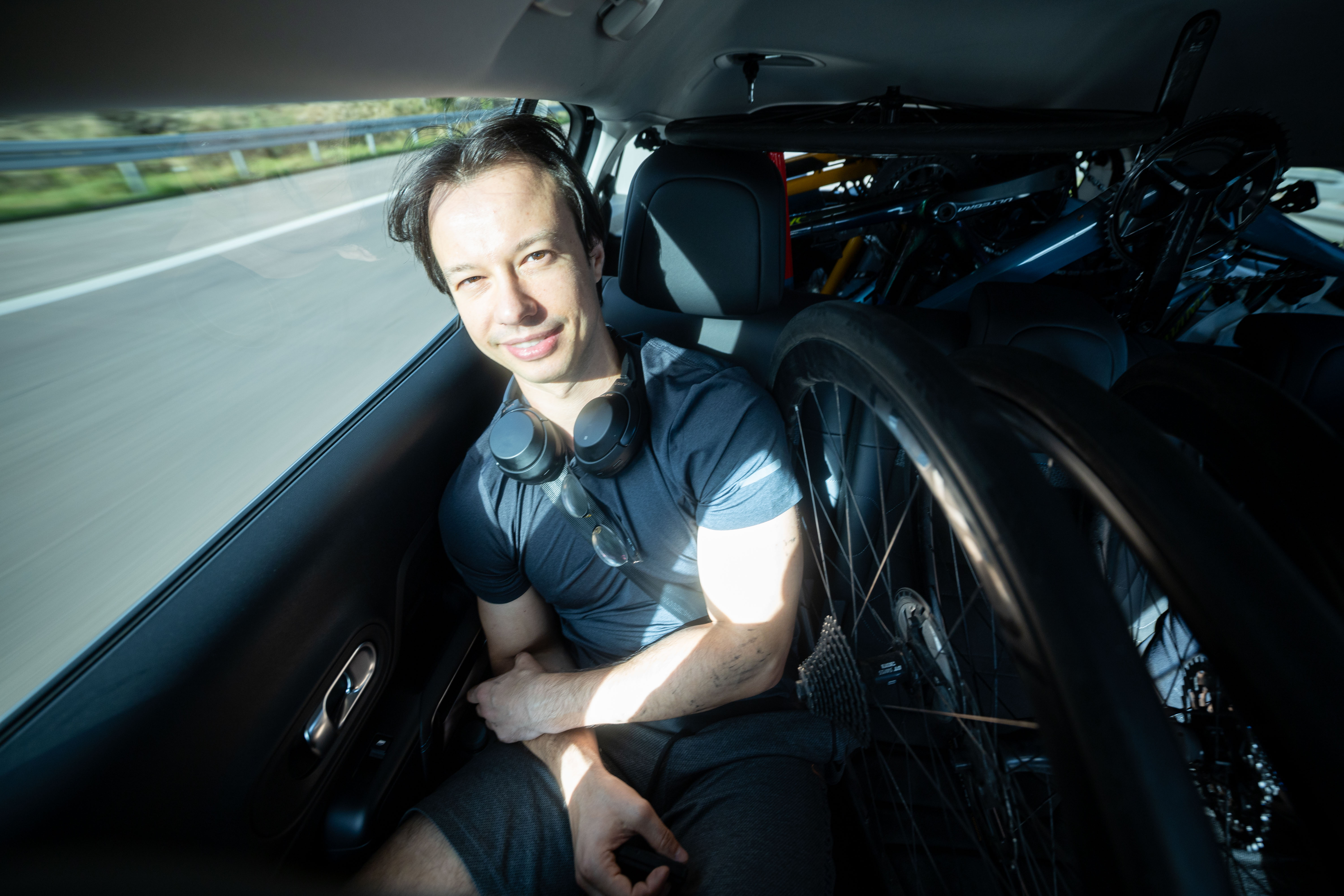 Initially, there were five of us: Jozef, Daniil, Evgeny, Andrey, and me. In very cramped conditions, we had to disassemble the bikes (remove the wheels, turn the handlebars), but even then, we could only fit four bikes. Andrey’s frame was slightly too large for the trunk’s opening, and with heavy hearts, we had to leave him behind.