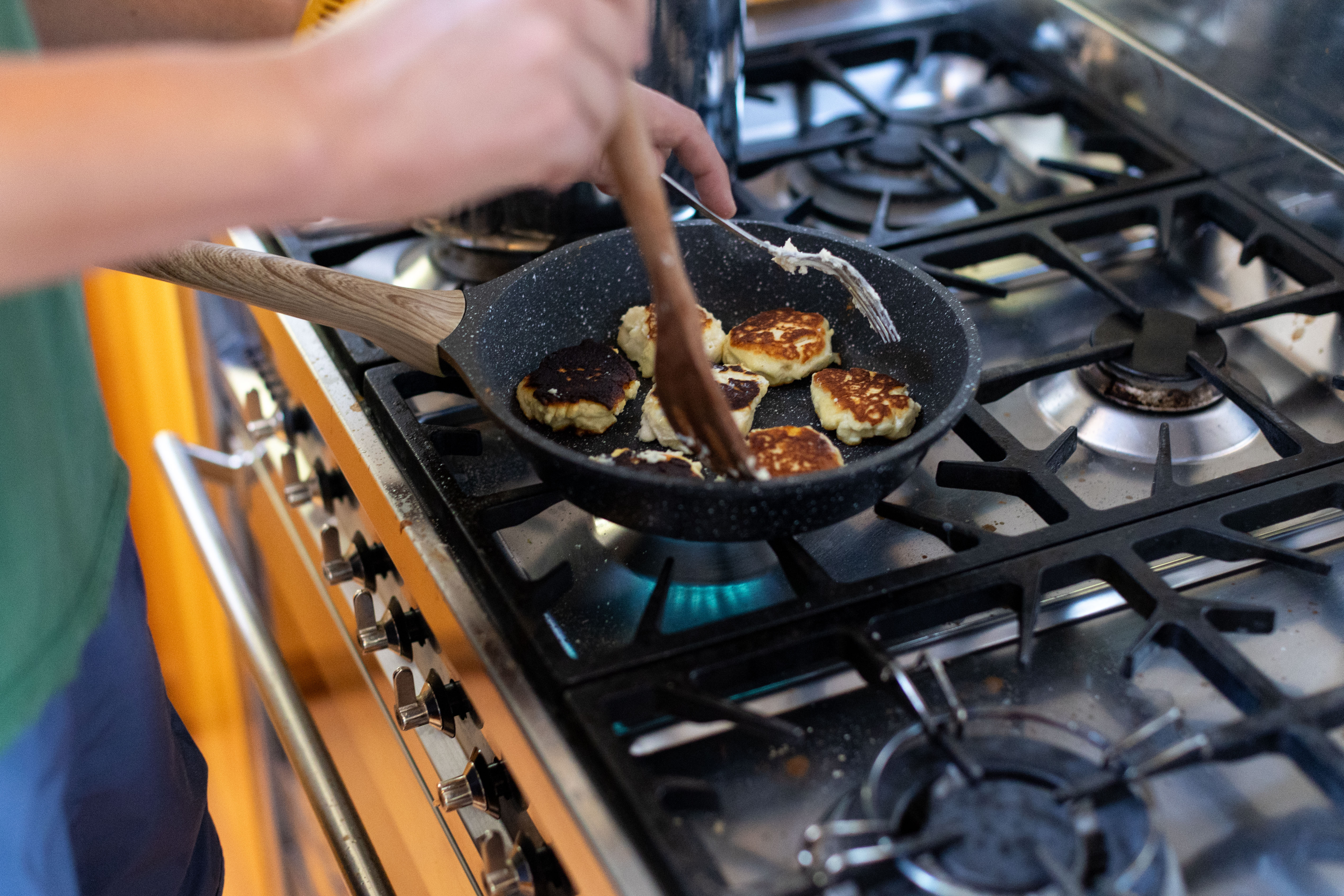 In the morning, Daniil felt well enough to make syrniki (cheese pancakes) and join us (without the extra descent/ascent). Evgeny stayed at home.