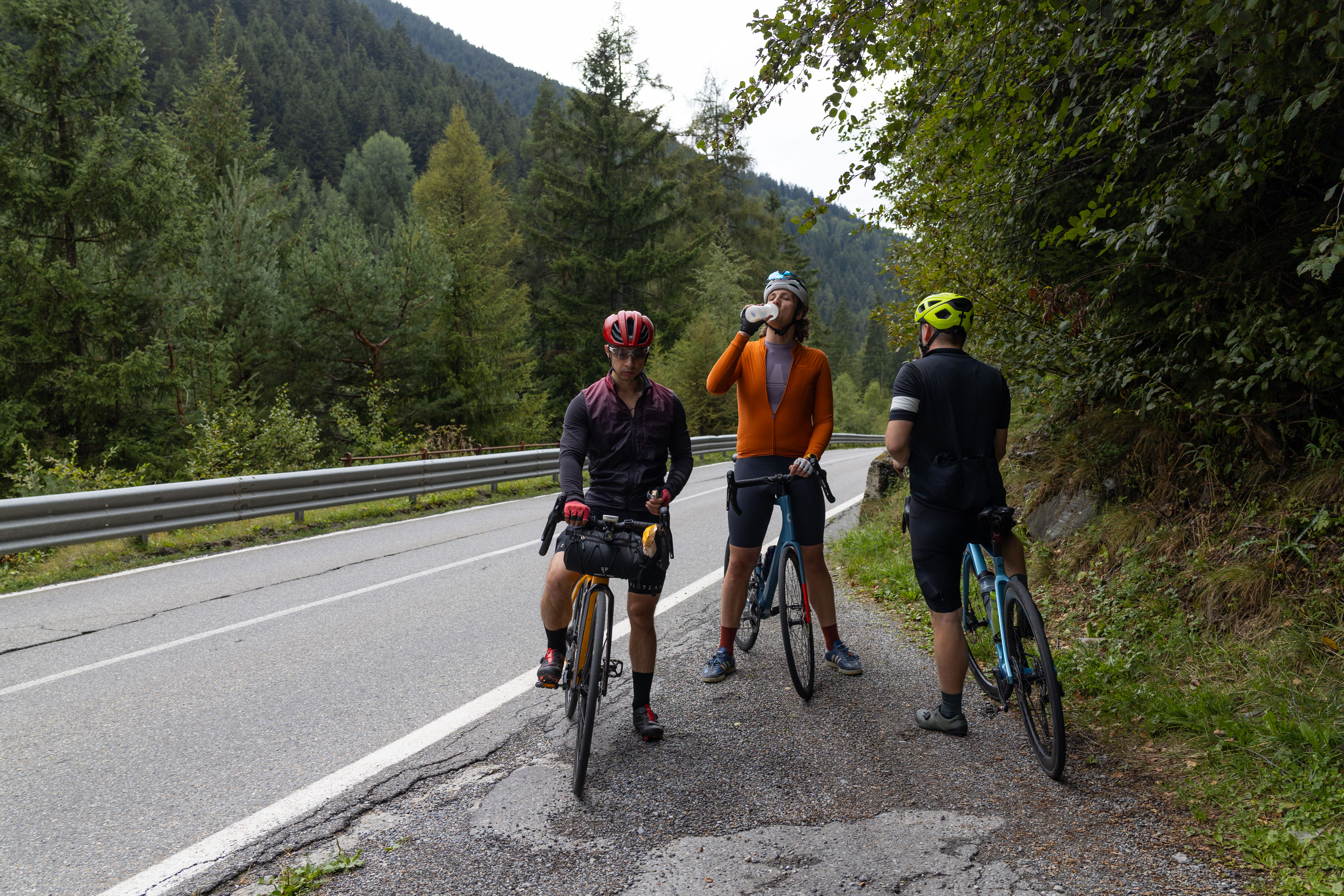 Originally, we planned to ride through Stelvio Pass and return via a 110 km loop with about 3,000 meters of total elevation gain. After the first few days, we decided this was too ambitious and shortened the route.