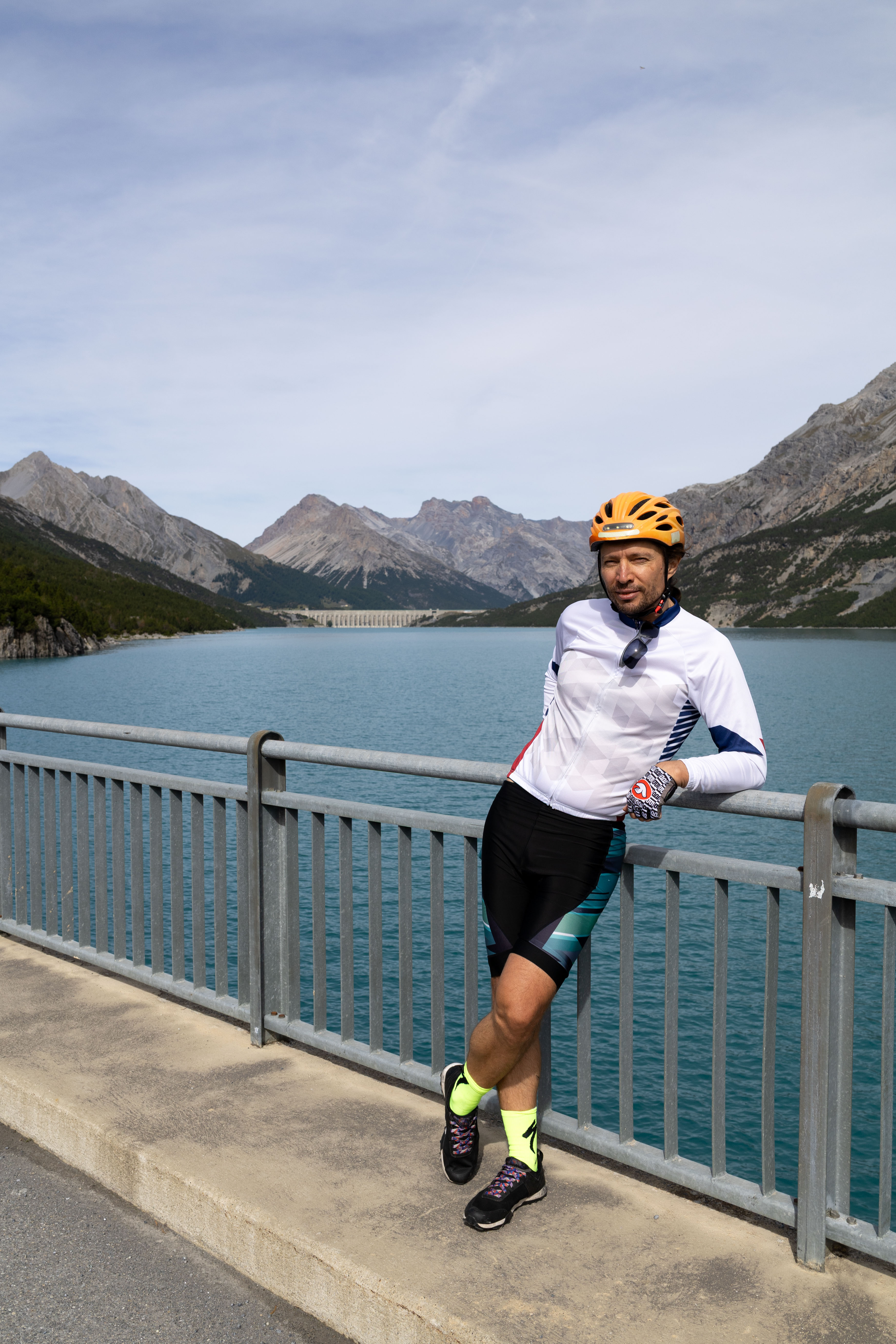 The place was truly beautiful, with turquoise water on one side and a dizzying drop by the dam on the other. Jozef and I had ridden enough, so we disassembled and loaded our bikes at the lake’s parking lot. Evgeny wanted to ride down with the breeze, so we picked him up on the way down.