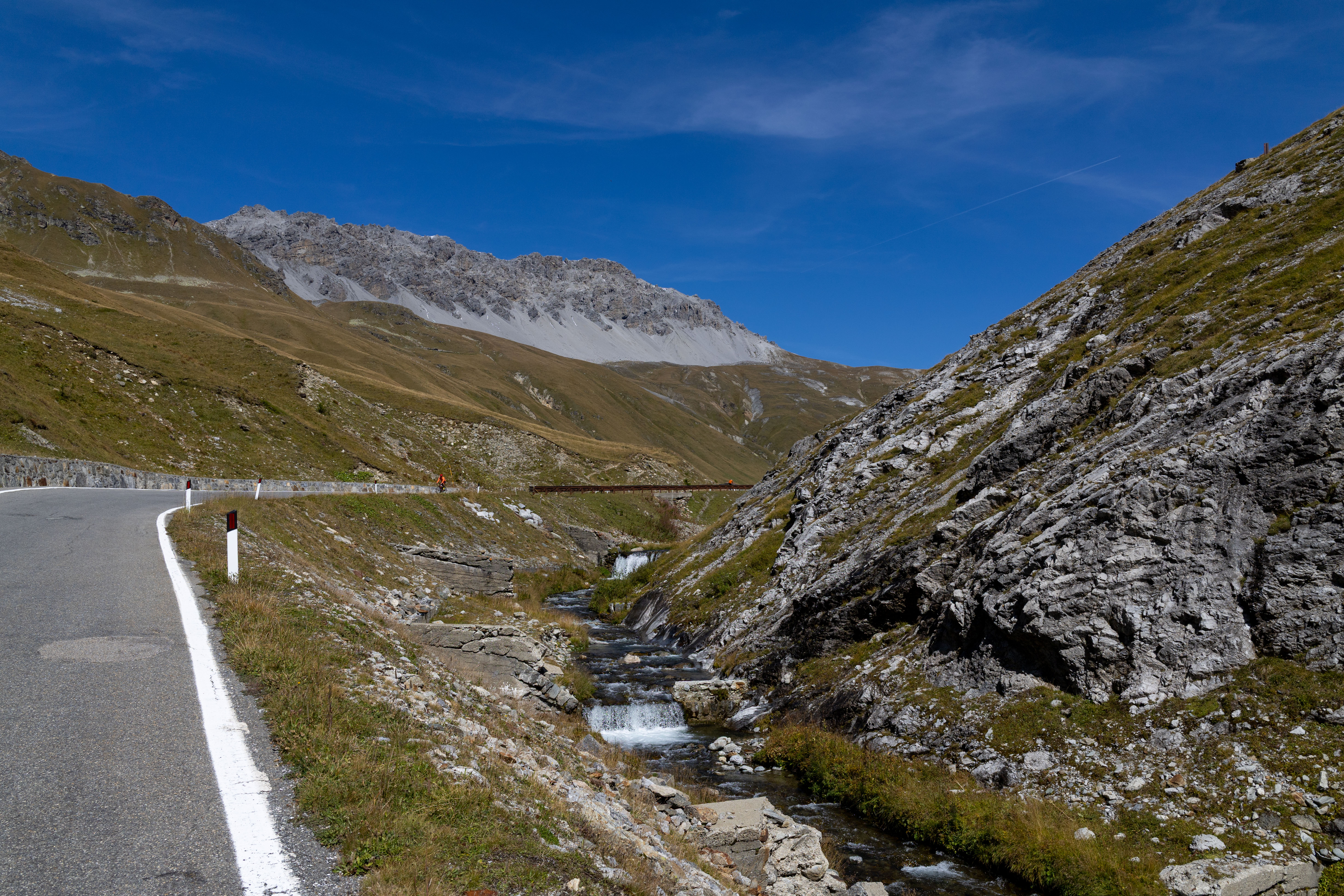 Near the pass runs the border with Switzerland, which we crossed into. Since I usually descend slower than the others, we decided to split up there. Jozef quickly rode back home, while I took my time, stopping frequently for photos.