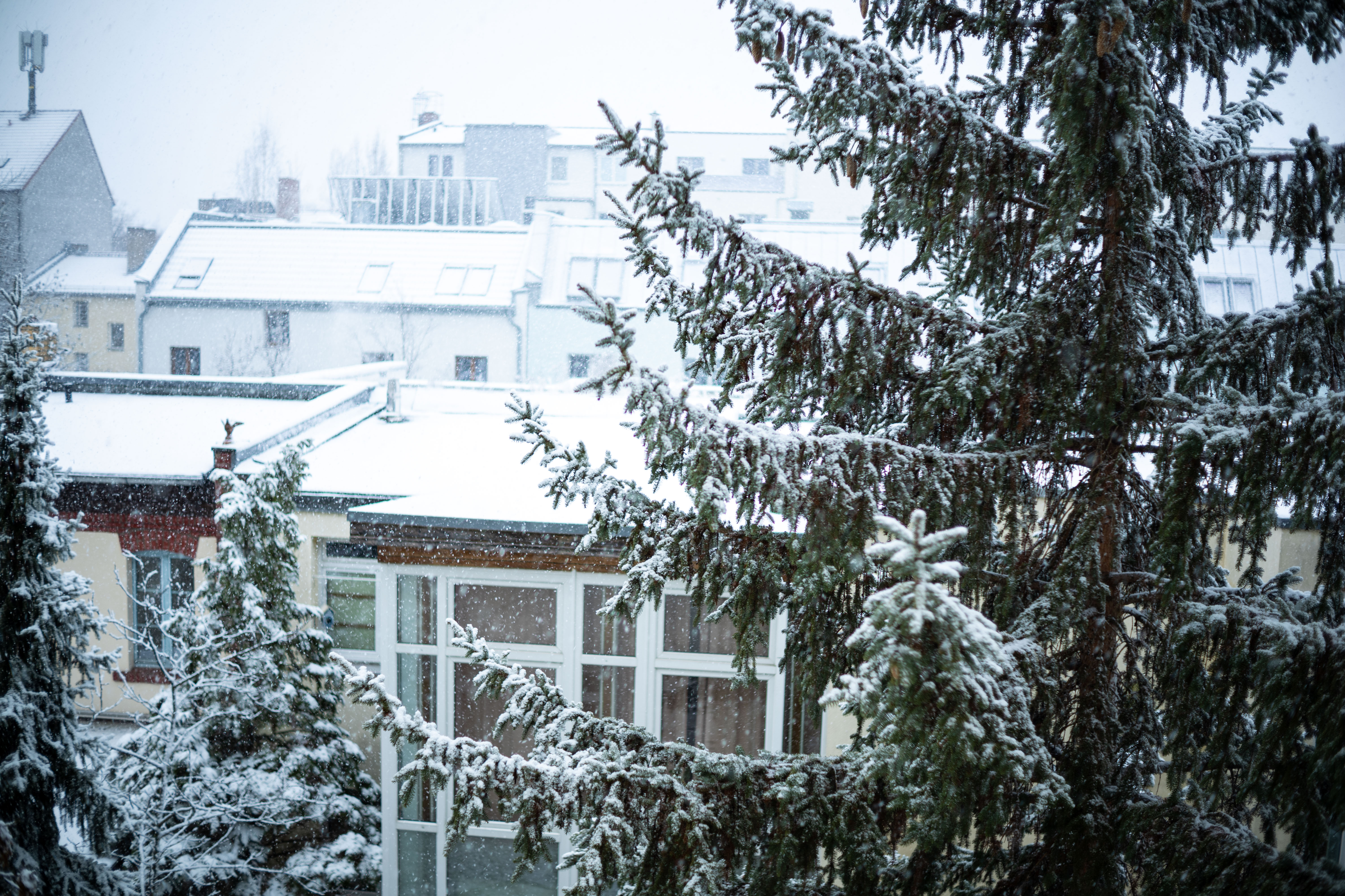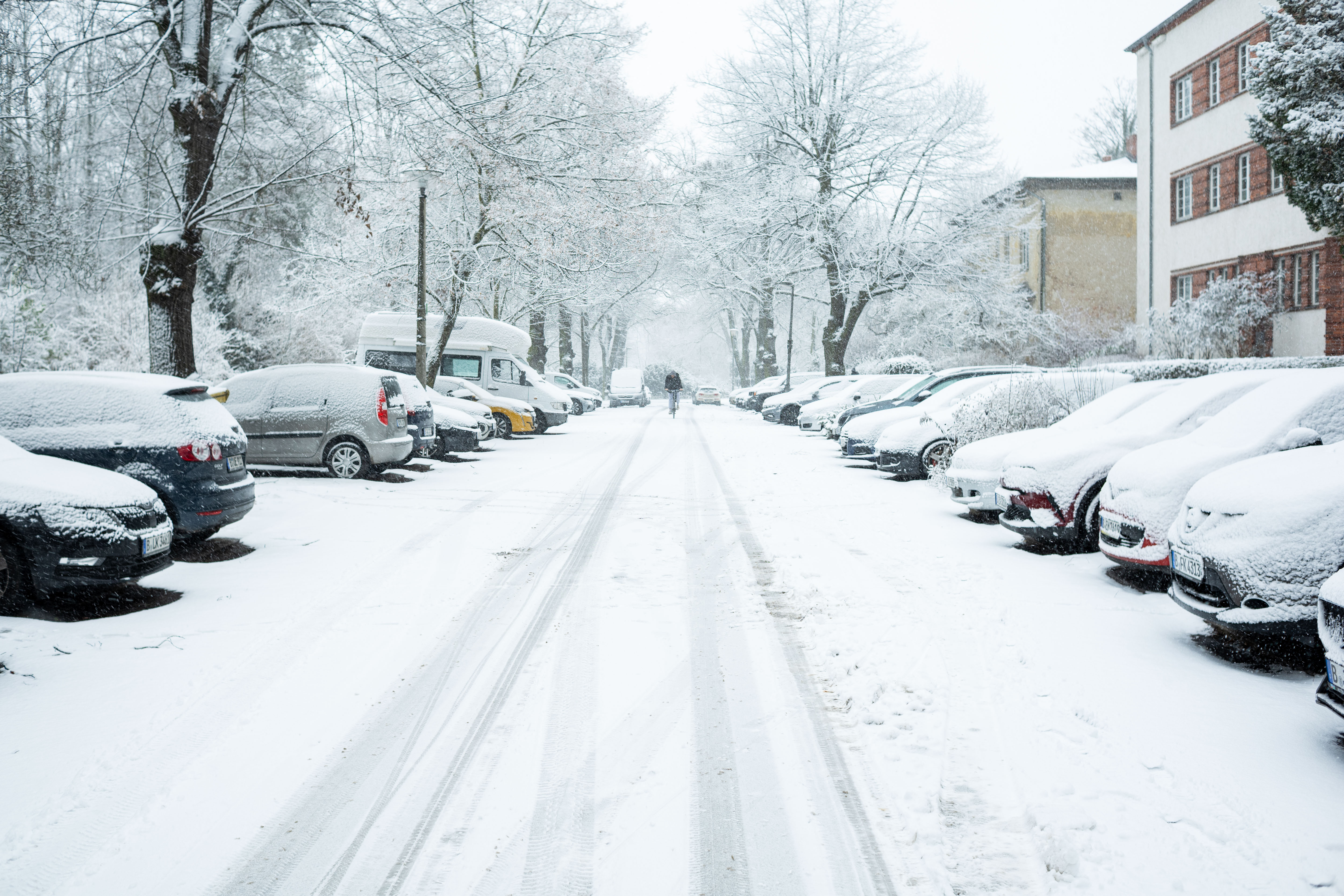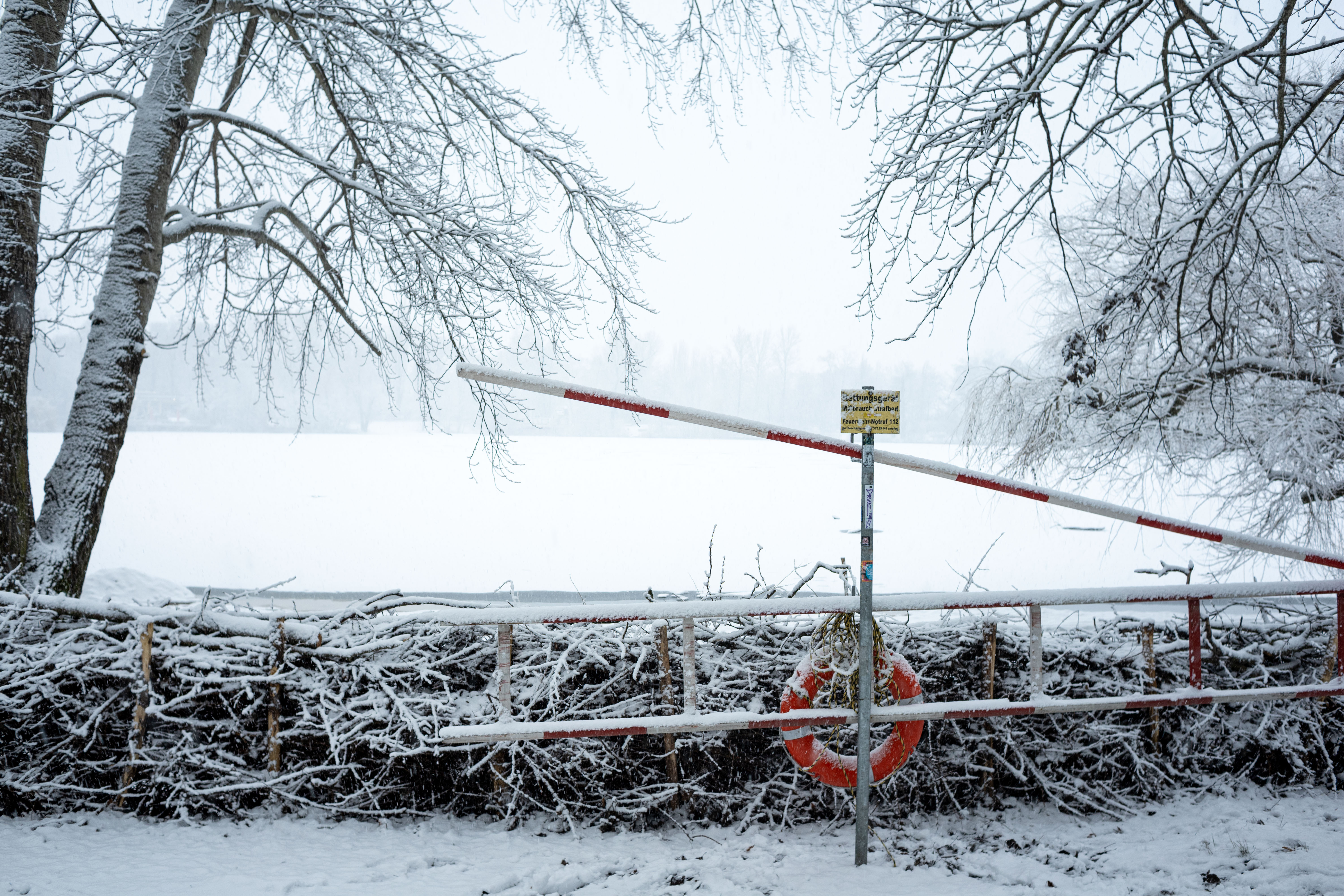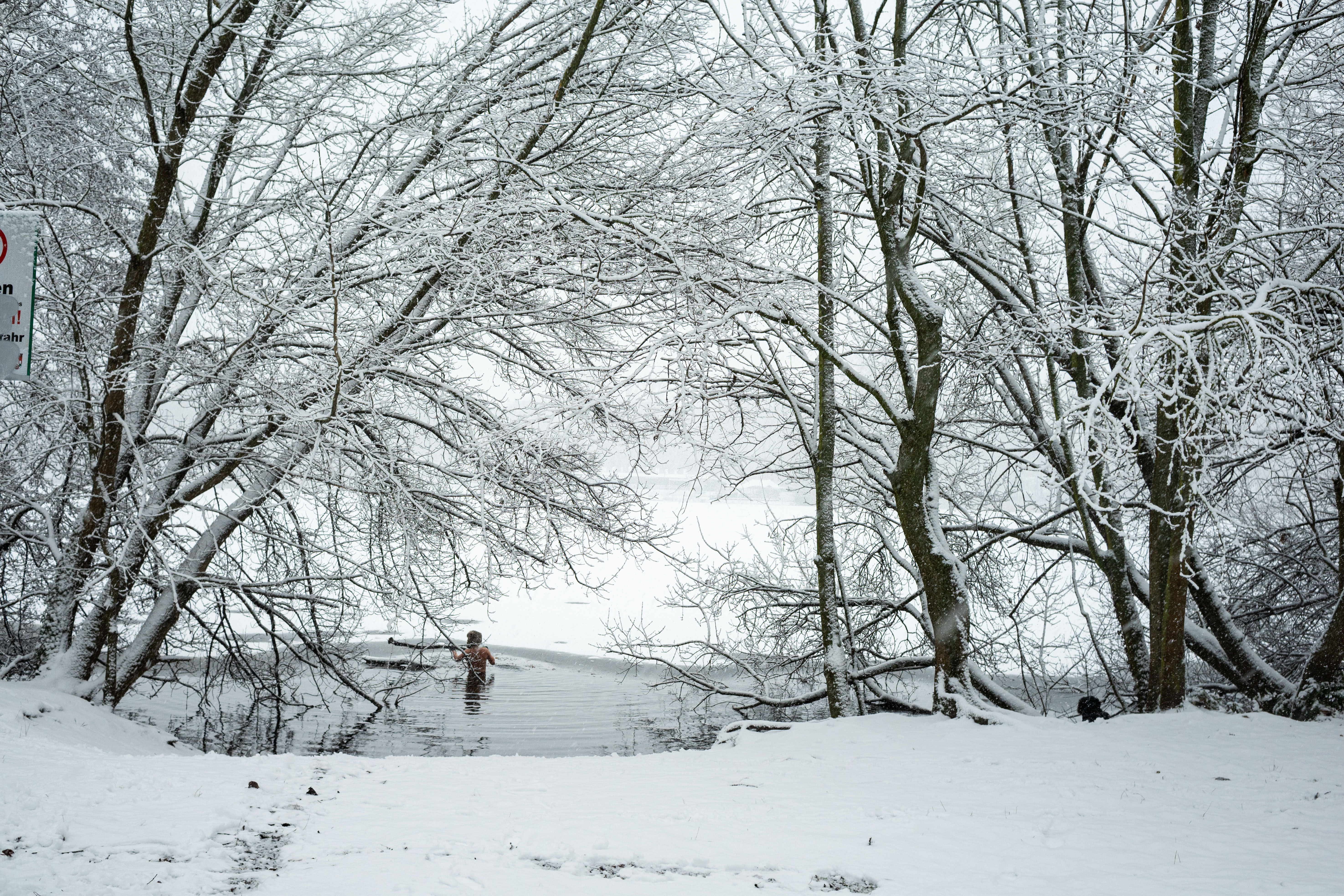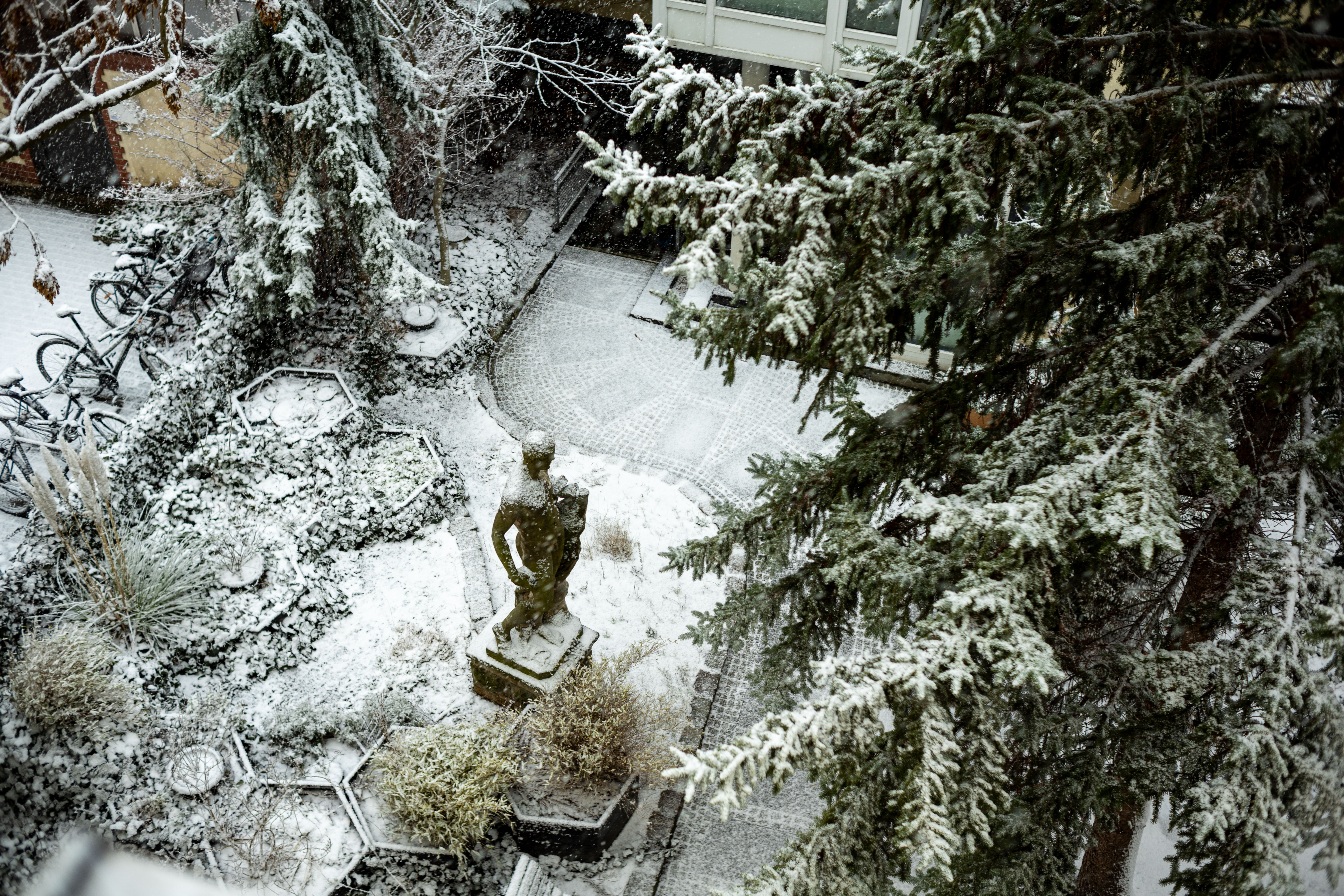 The Berliner Dom, a grand cathedral in Berlin, Germany, is captured in a snowy scene. The cathedral, constructed from stone, features two domes and a central bell tower. The photo is taken from a distance, with the cathedral's intricate details and architectural grandeur visible. The sky is gray, and the ground is covered in snow, adding to the winter atmosphere. People are scattered around the cathedral, some walking and others standing, creating a lively atmosphere. The image code 'sa_1600' may refer to the specific viewpoint or angle from which the photo was taken.