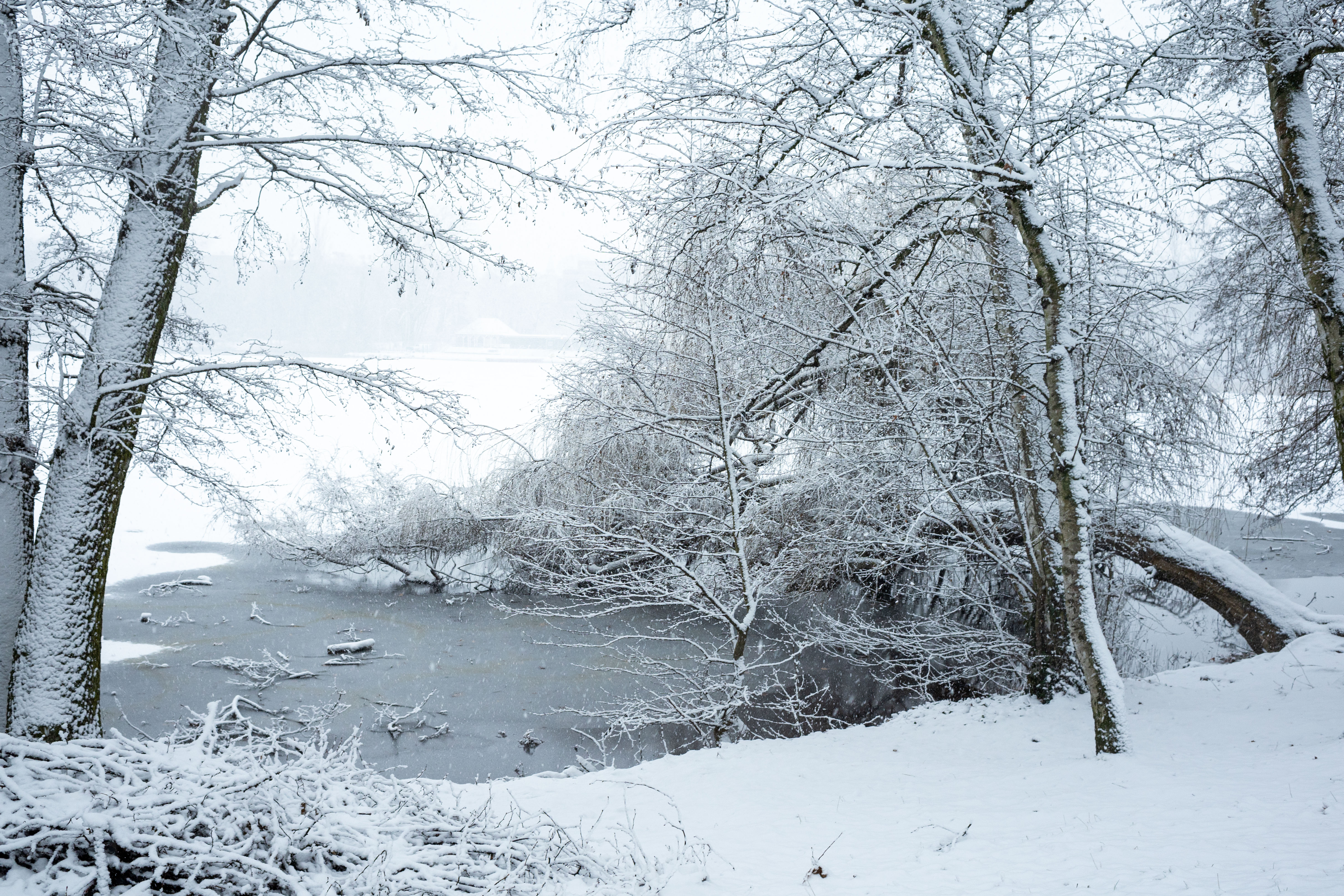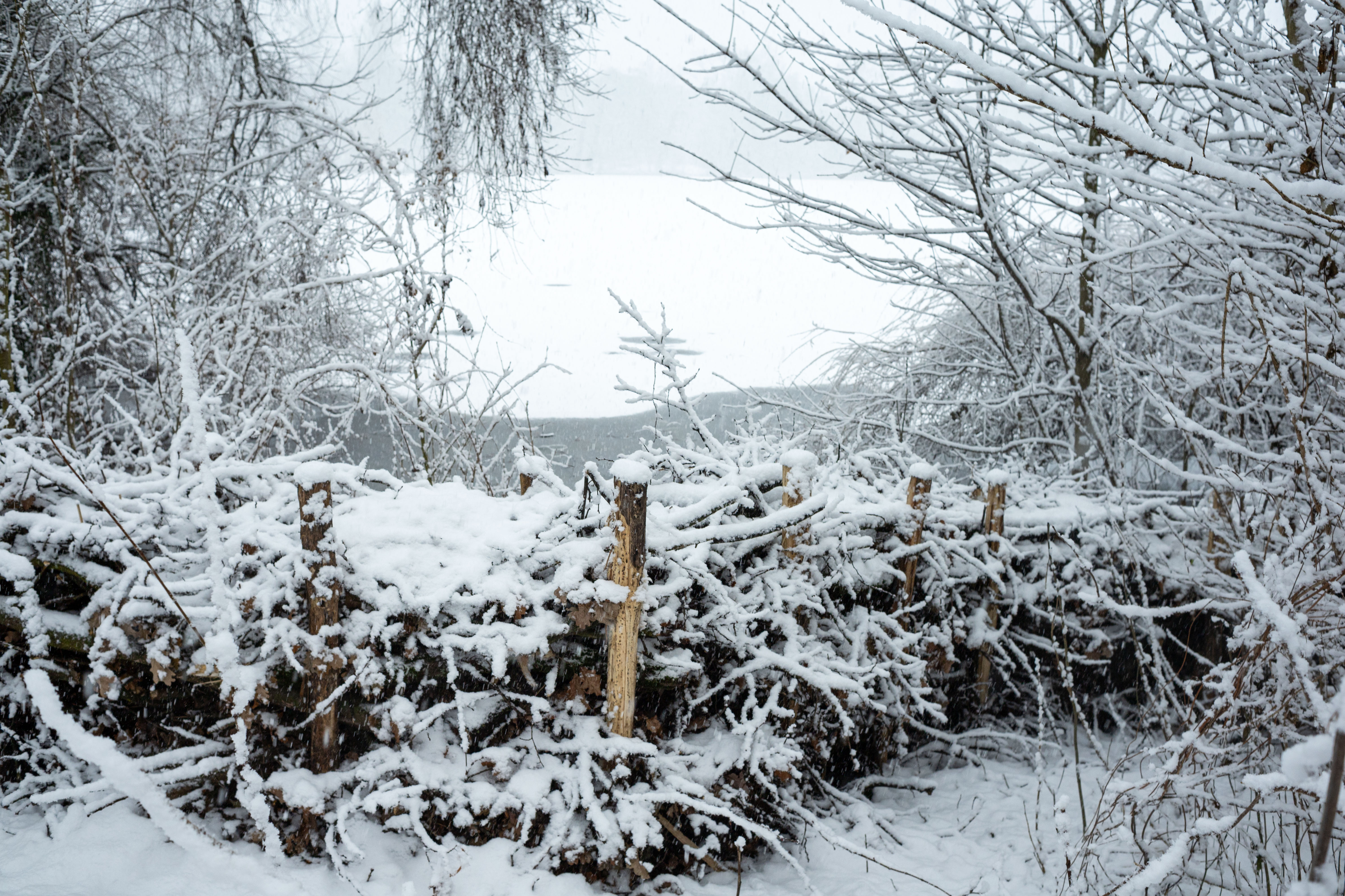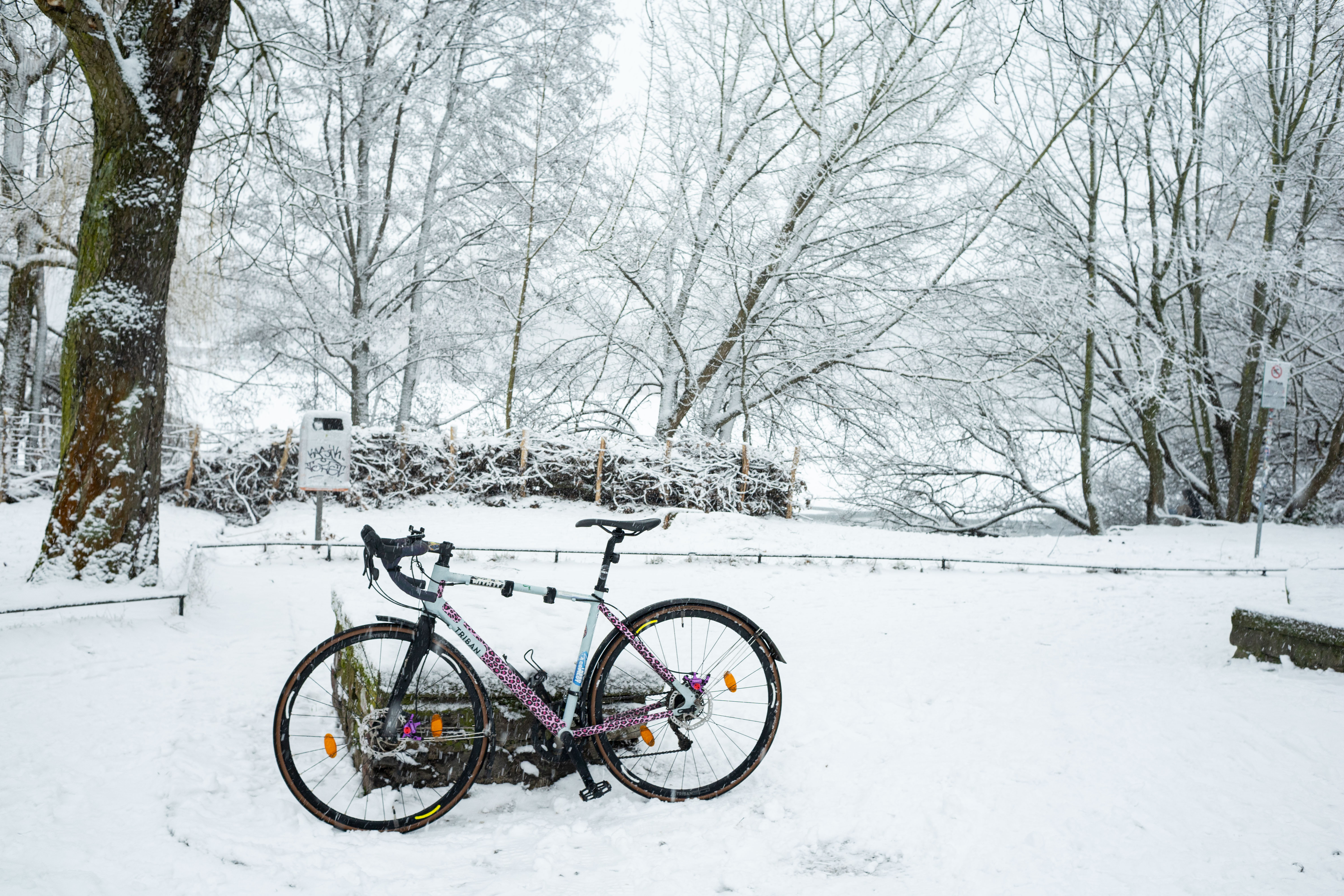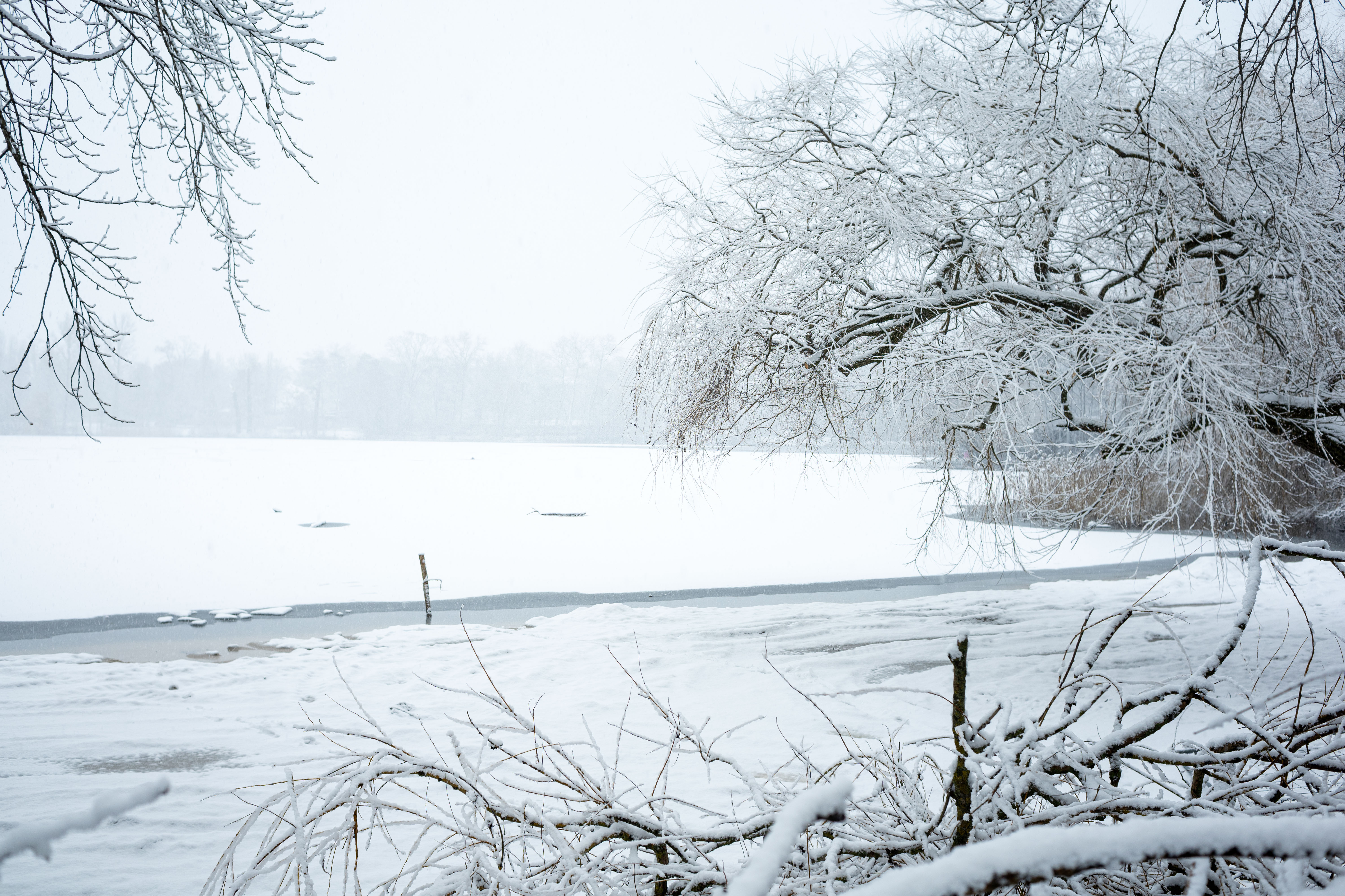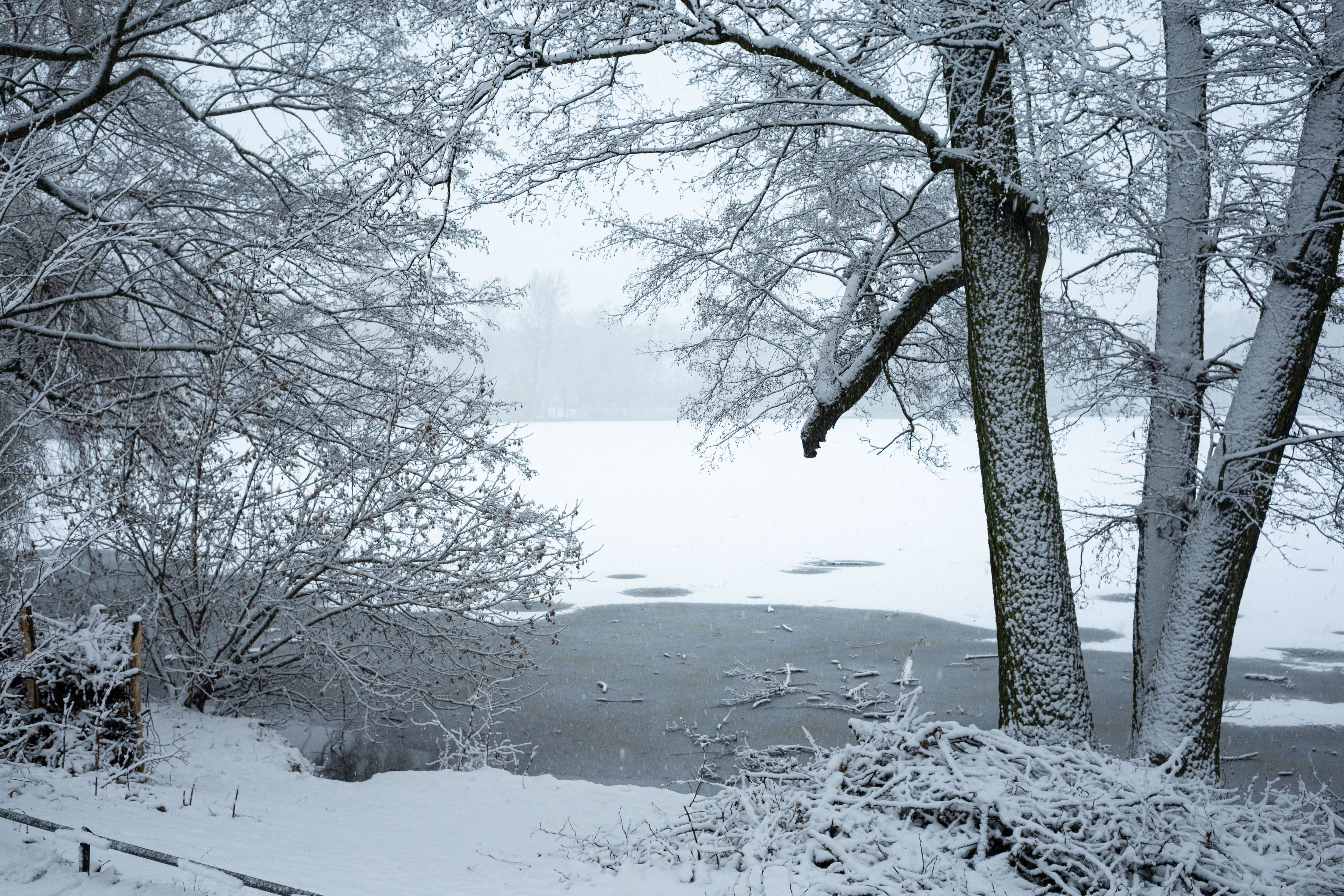 The Berliner Dom, a grand cathedral in Berlin, Germany, is captured in a snowy scene. The cathedral, constructed from stone, features two domes and a central bell tower. The photo is taken from a distance, with the cathedral's intricate details and architectural grandeur visible. The sky is gray, and the ground is covered in snow, adding to the winter atmosphere. People are scattered around the cathedral, some walking and others standing, creating a lively atmosphere. The image code 'sa_1600' may refer to the specific viewpoint or angle from which the photo was taken.