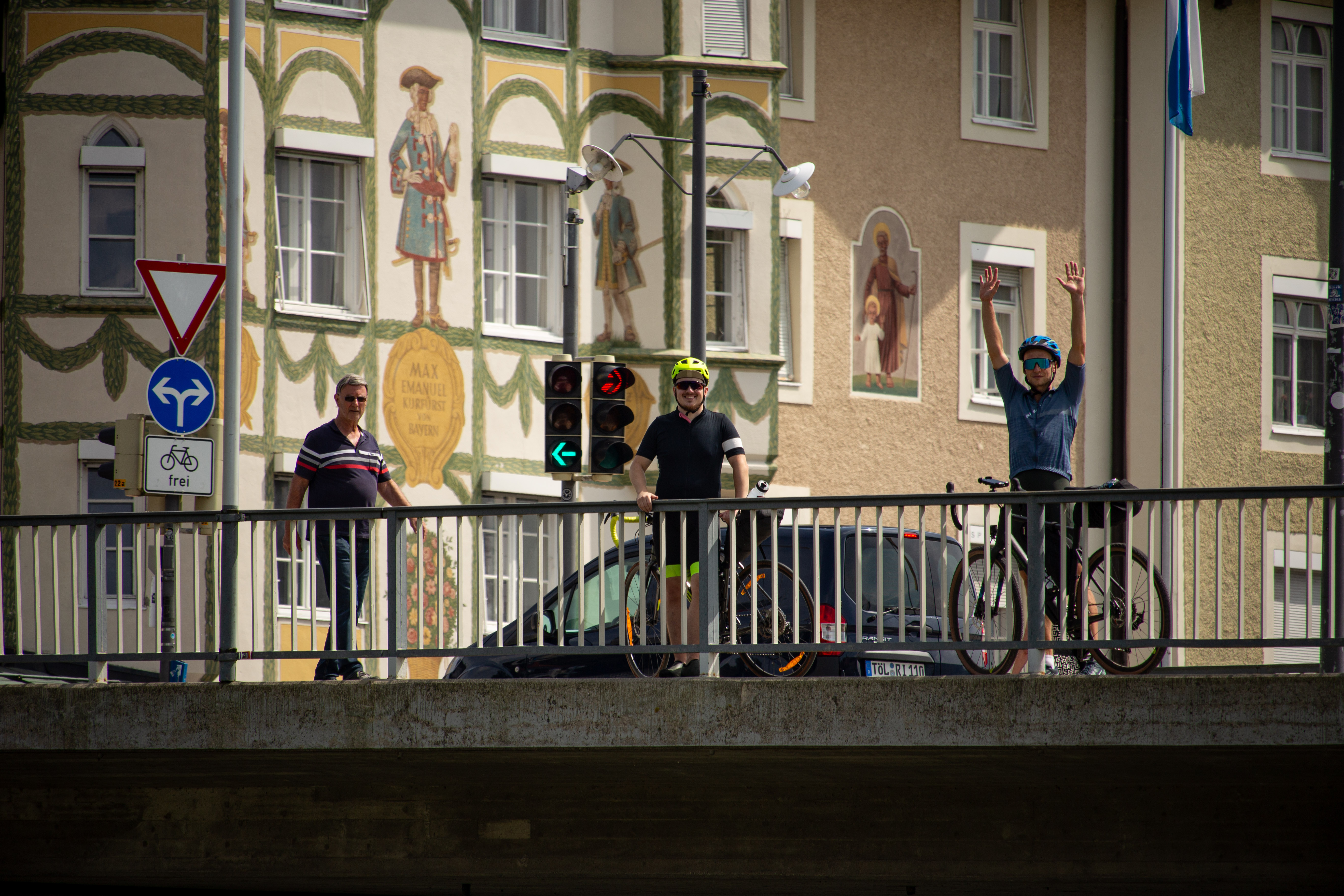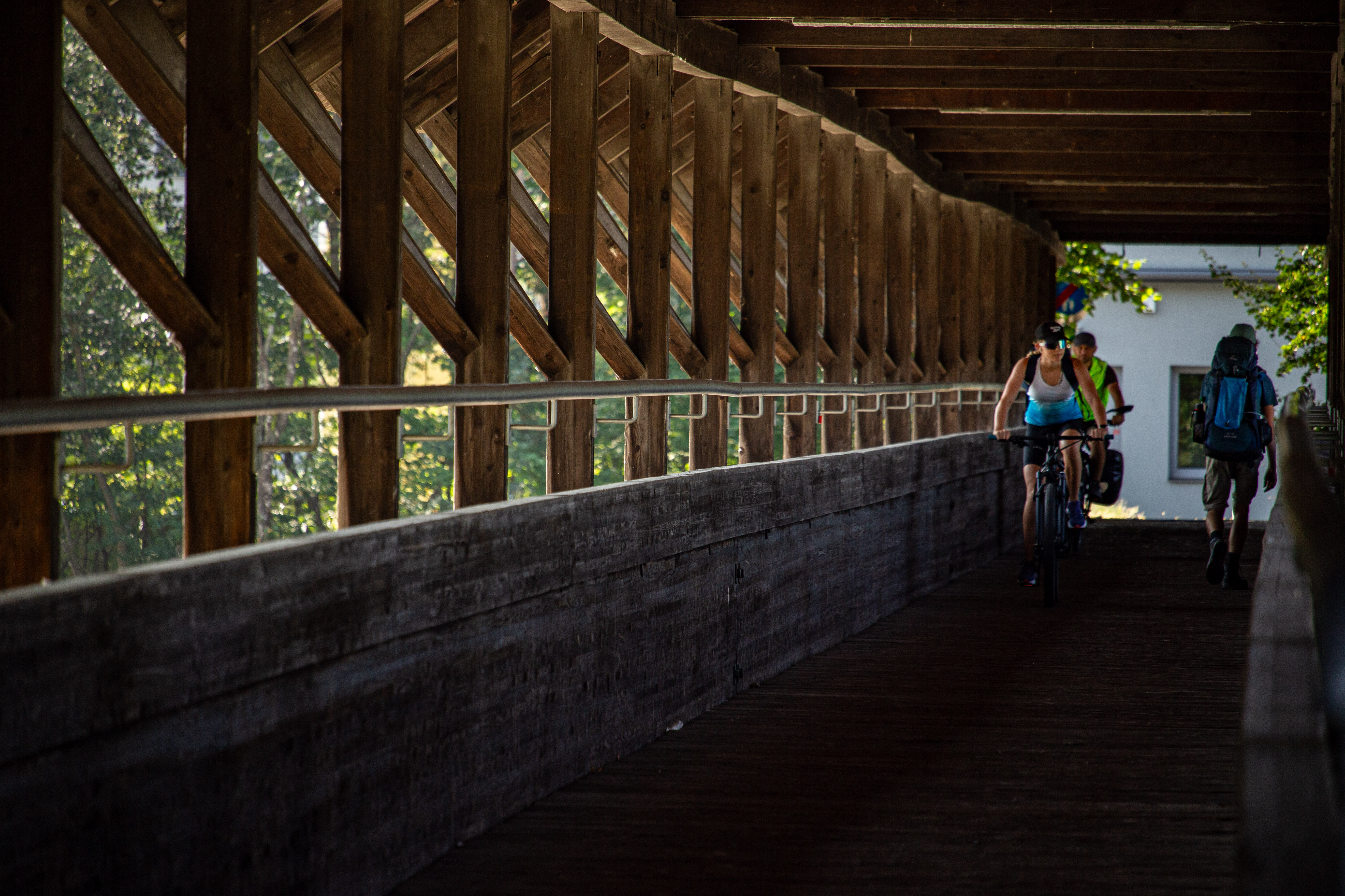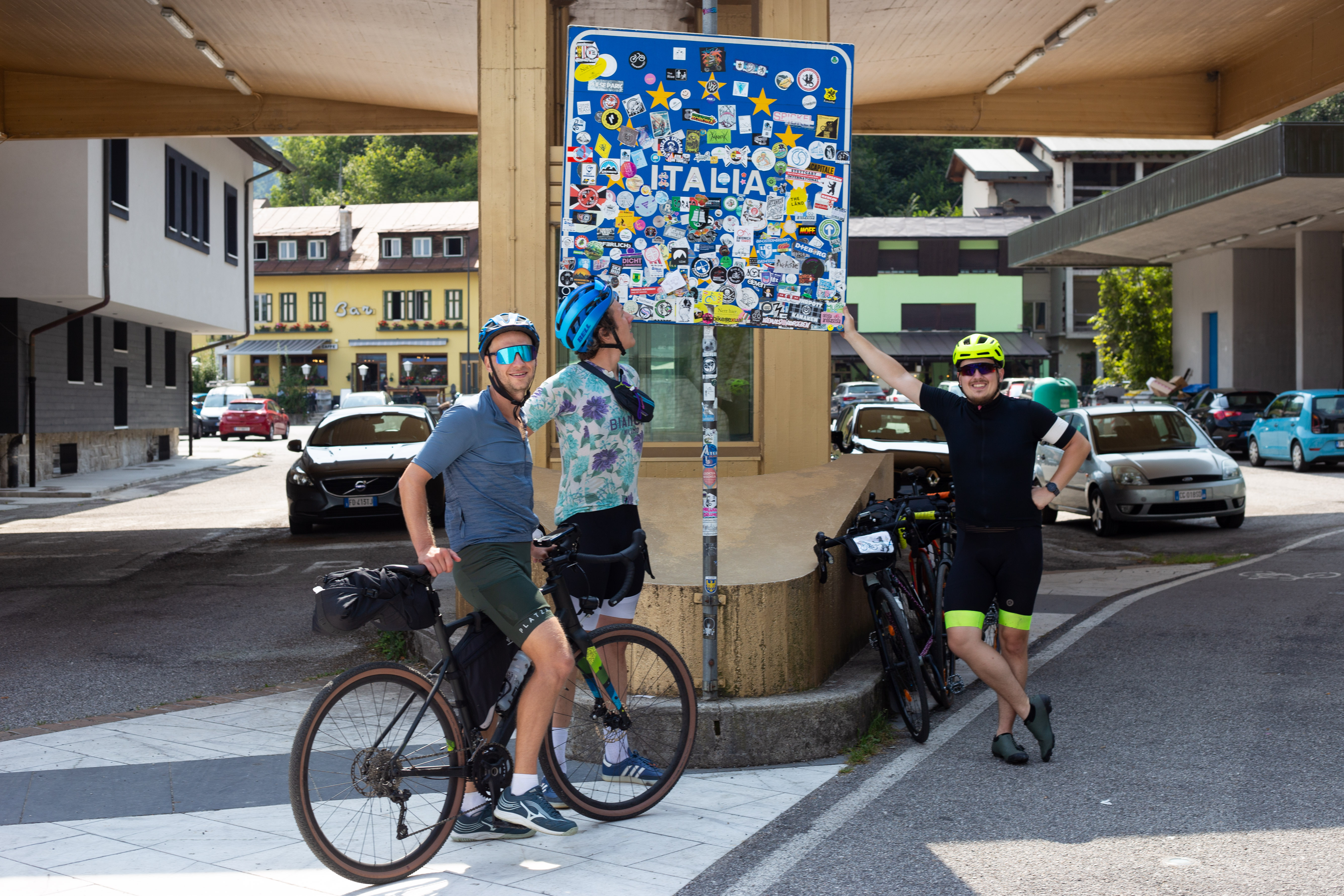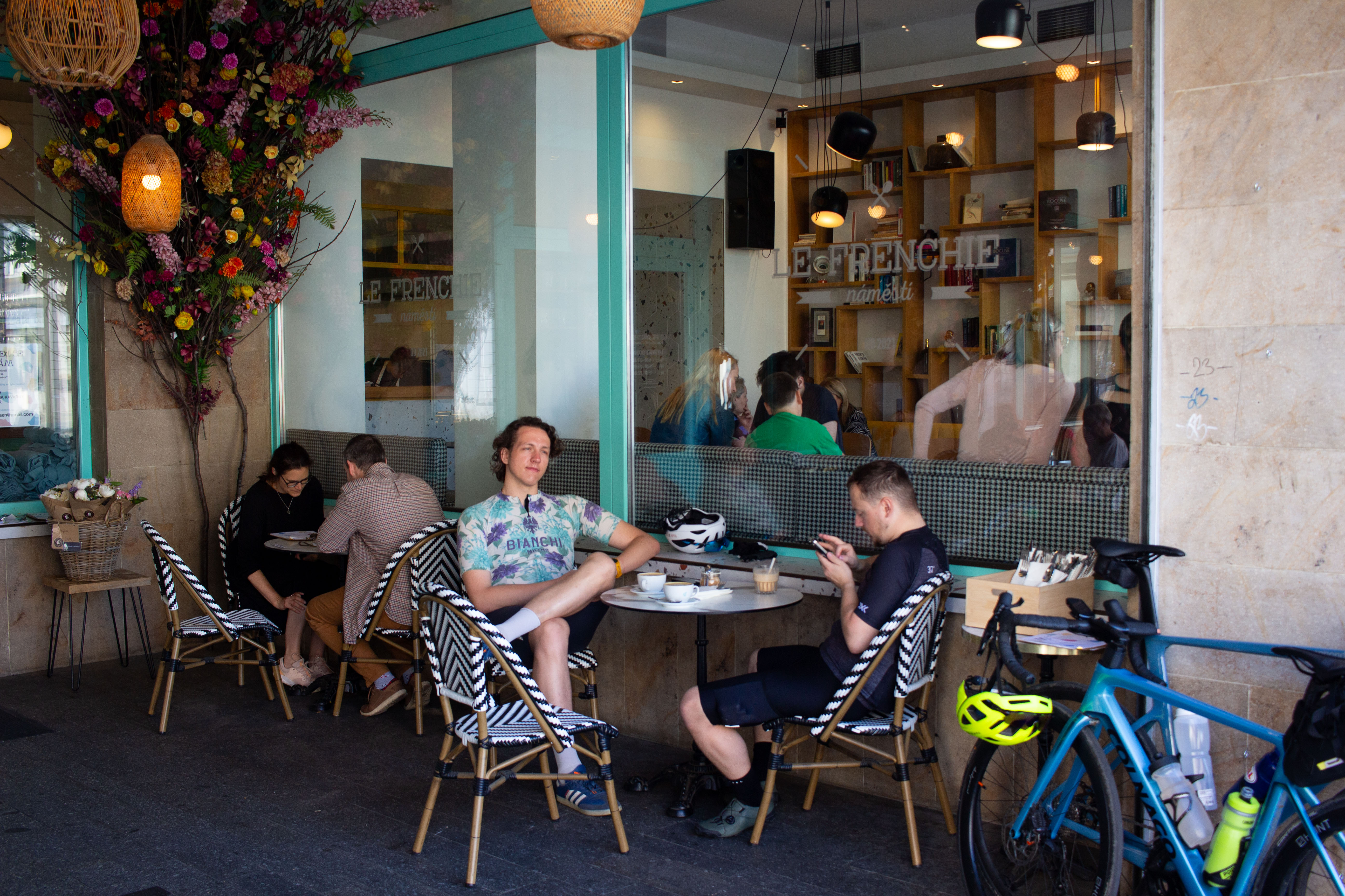 The image features a white building adorned with a unique, moss-covered wall of bicycles, creating a unique and artistic atmosphere. The building has a sign that reads "Vilničáská a říčáská" and "Vilničáská a říčáská" in Czech, indicating the building's location in the Czech Republic. The perspective of the image is from a low angle, emphasizing the height of the building and the bicycles. In the foreground, there are parked cars and a white car, adding to the urban setting. The image captures a blend of nature and urban life, with the bicycle wall serving as a unique and artistic landmark.
