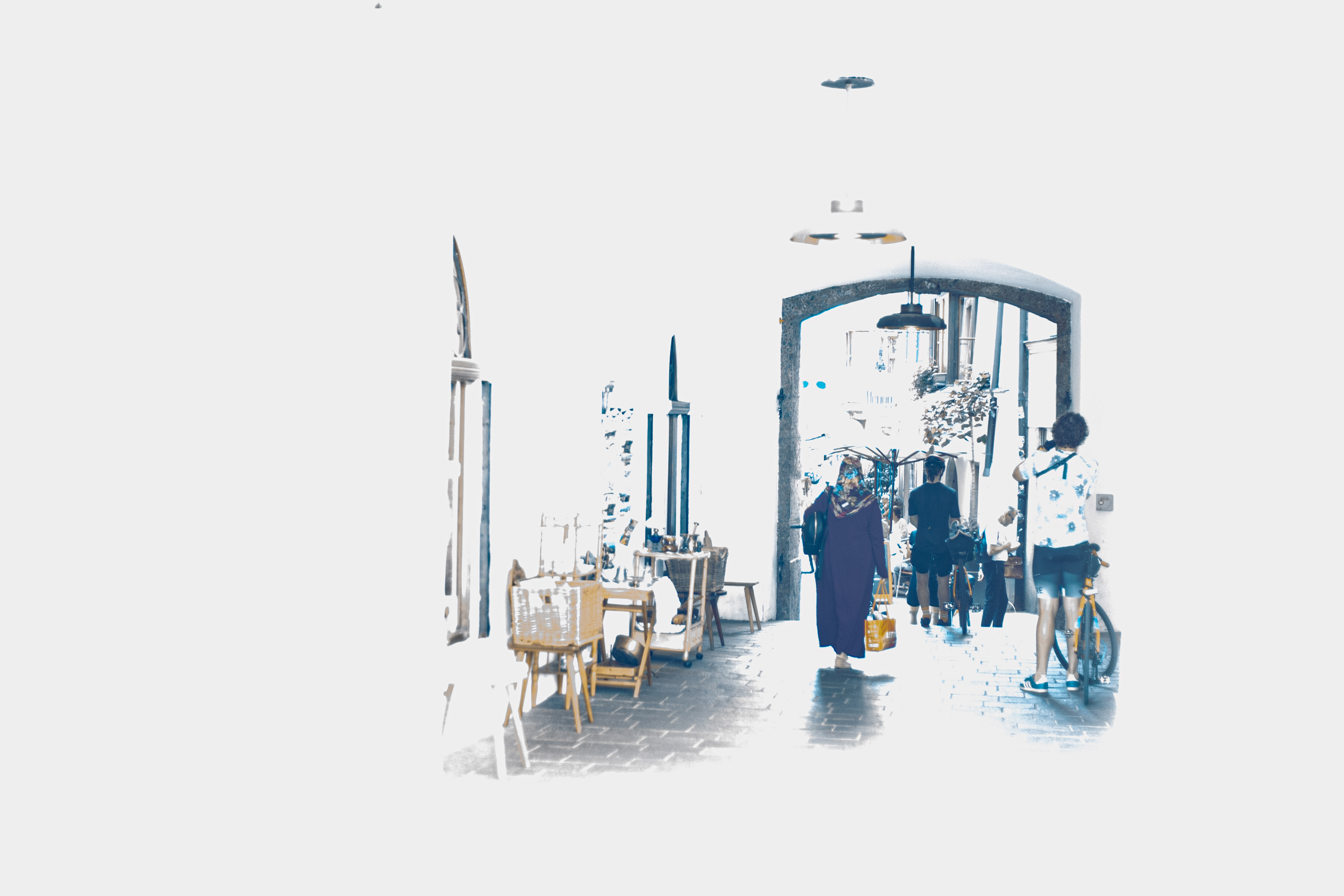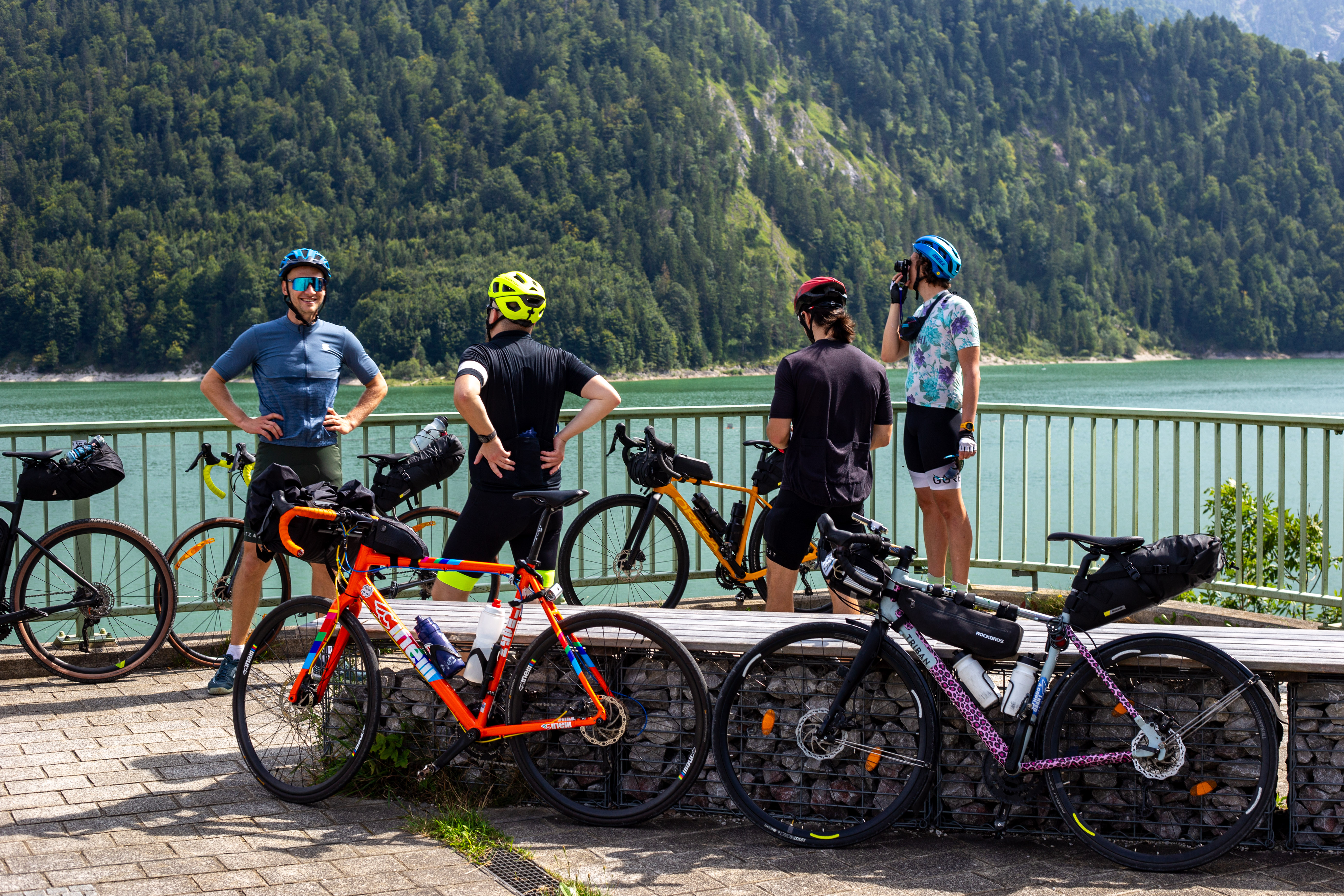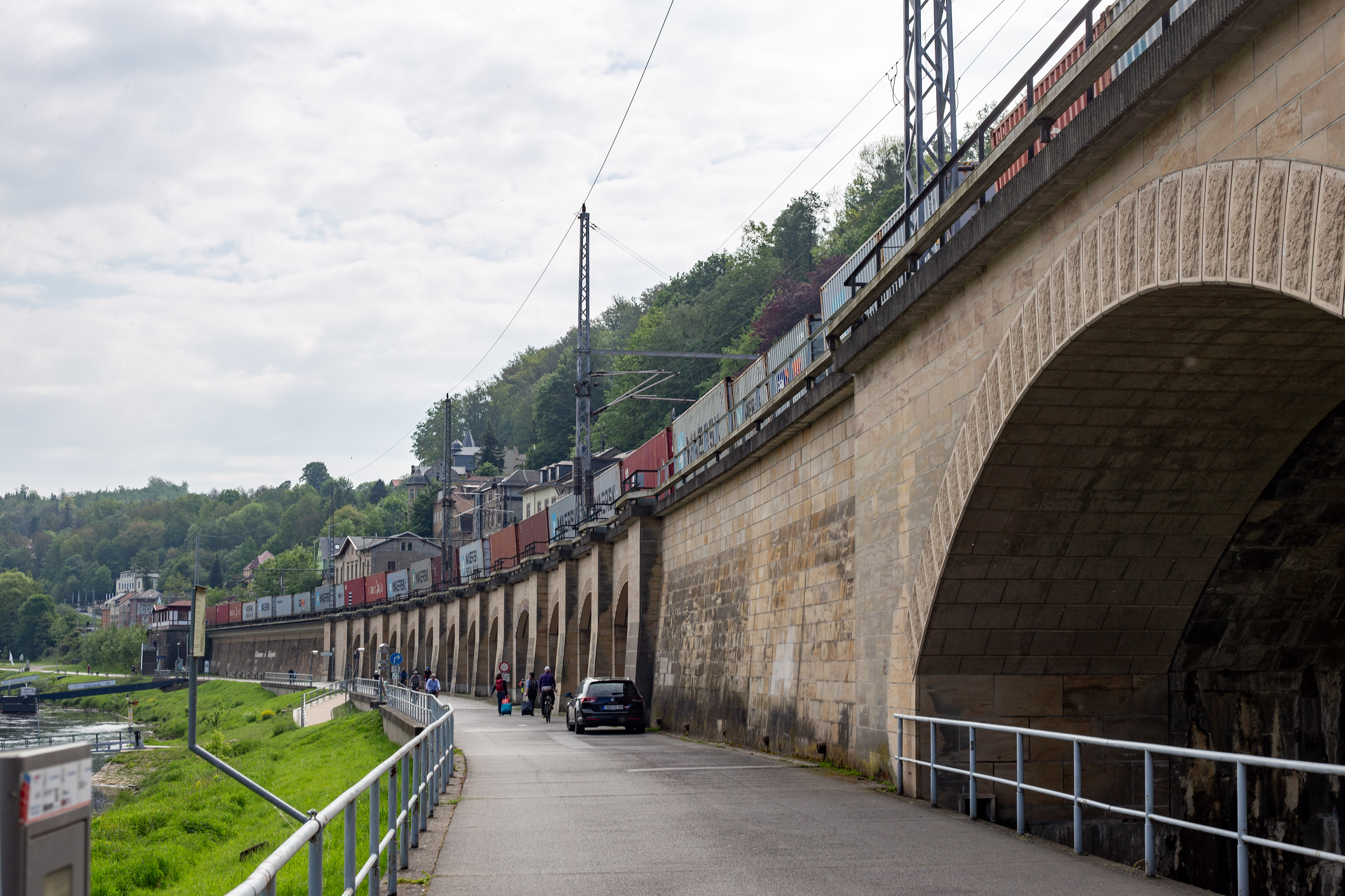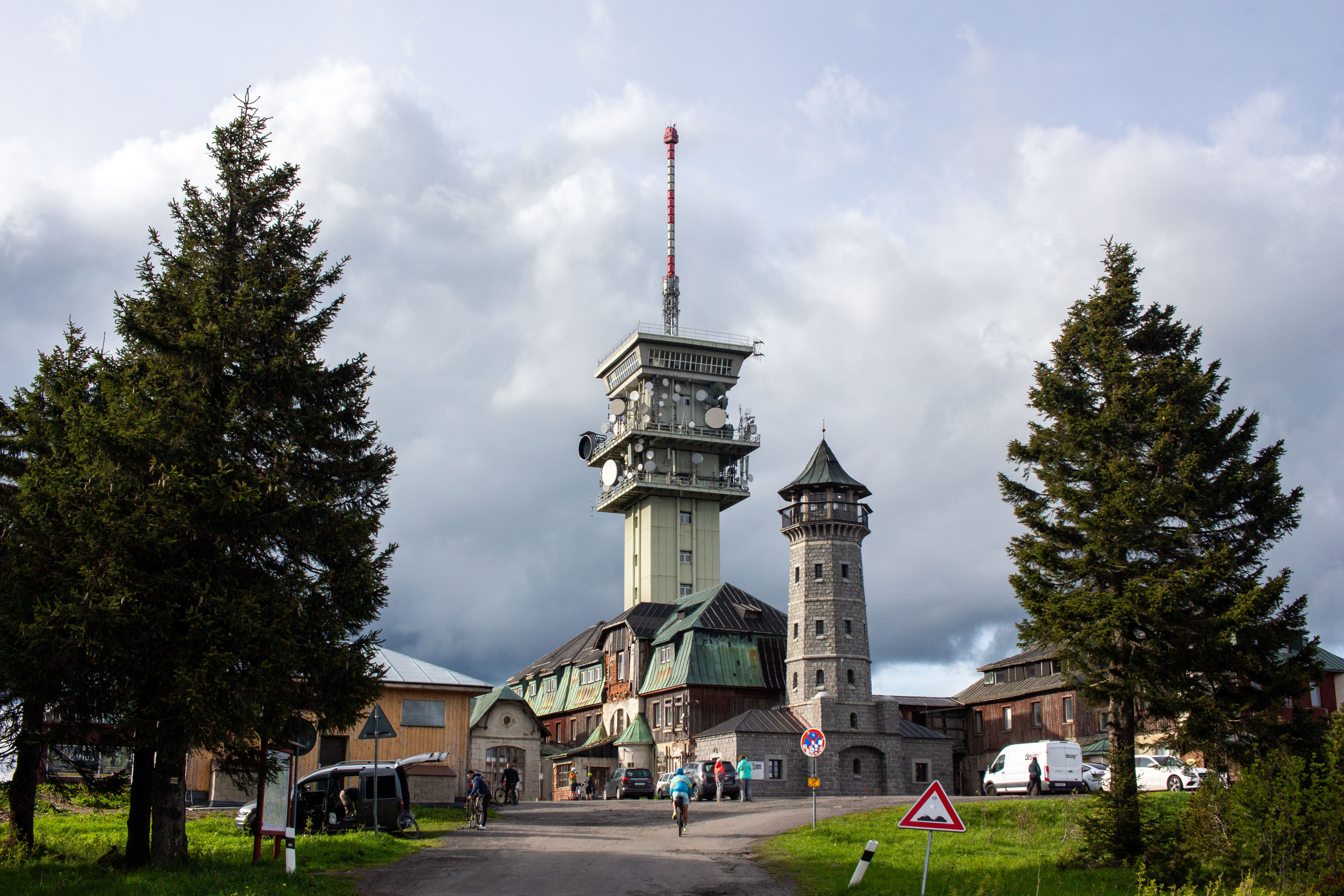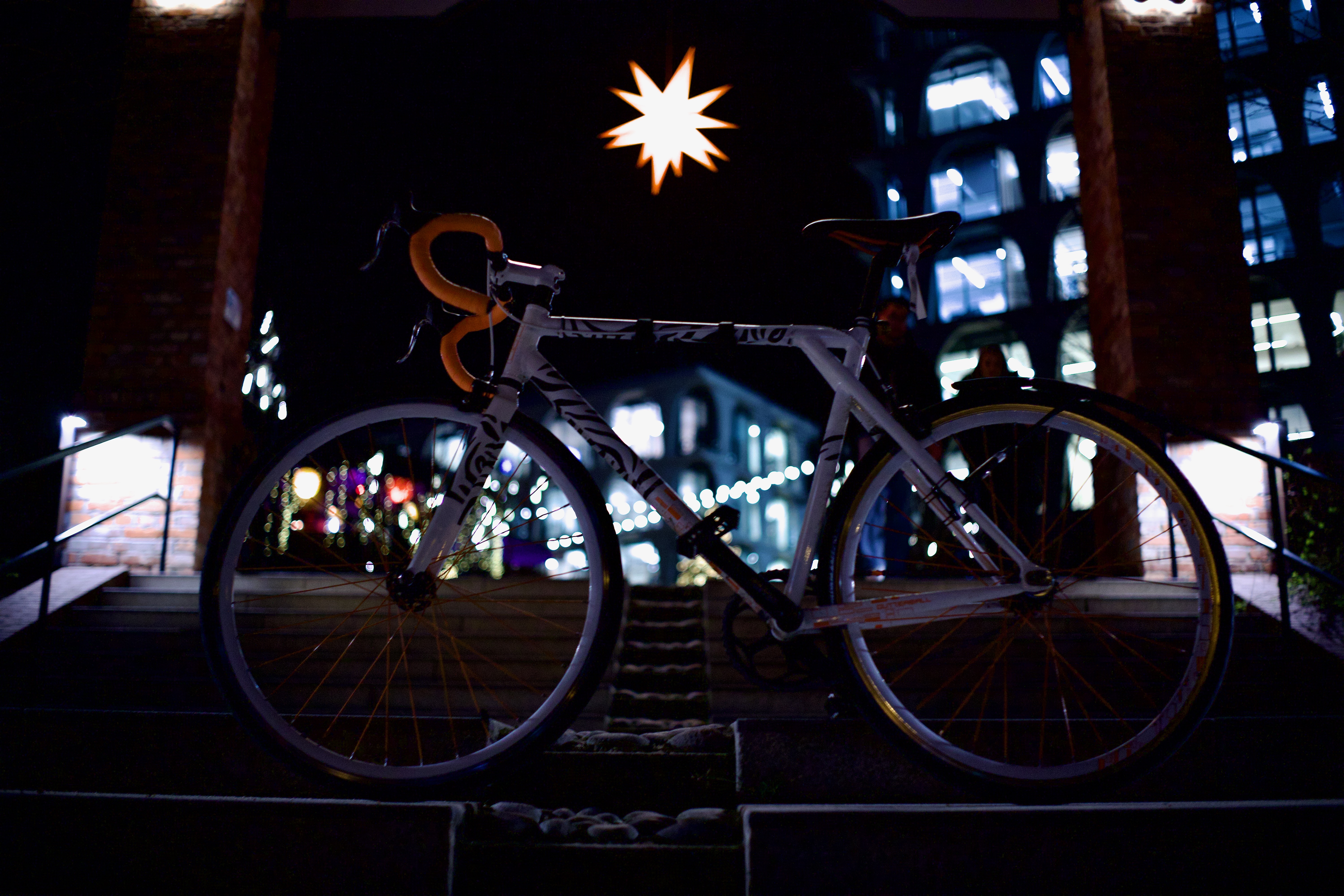 The image features a white building adorned with a unique, moss-covered wall of bicycles, creating a unique and artistic atmosphere. The building has a sign that reads "Vilničáská a říčáská" and "Vilničáská a říčáská" in Czech, indicating the building's location in the Czech Republic. The perspective of the image is from a low angle, emphasizing the height of the building and the bicycles. In the foreground, there are parked cars and a white car, adding to the urban setting. The image captures a blend of nature and urban life, with the bicycle wall serving as a unique and artistic landmark.